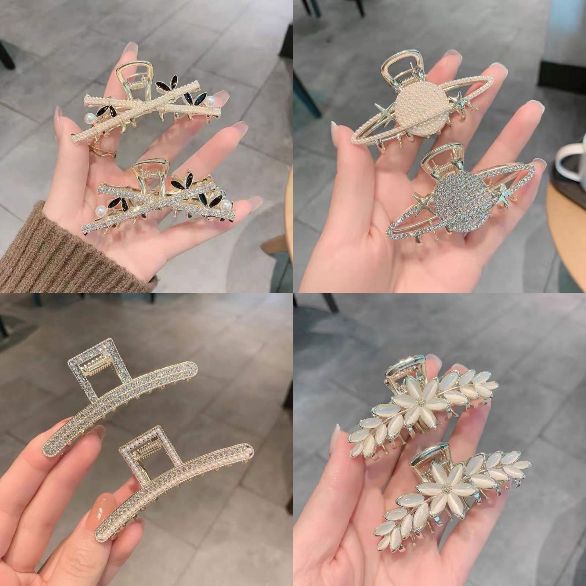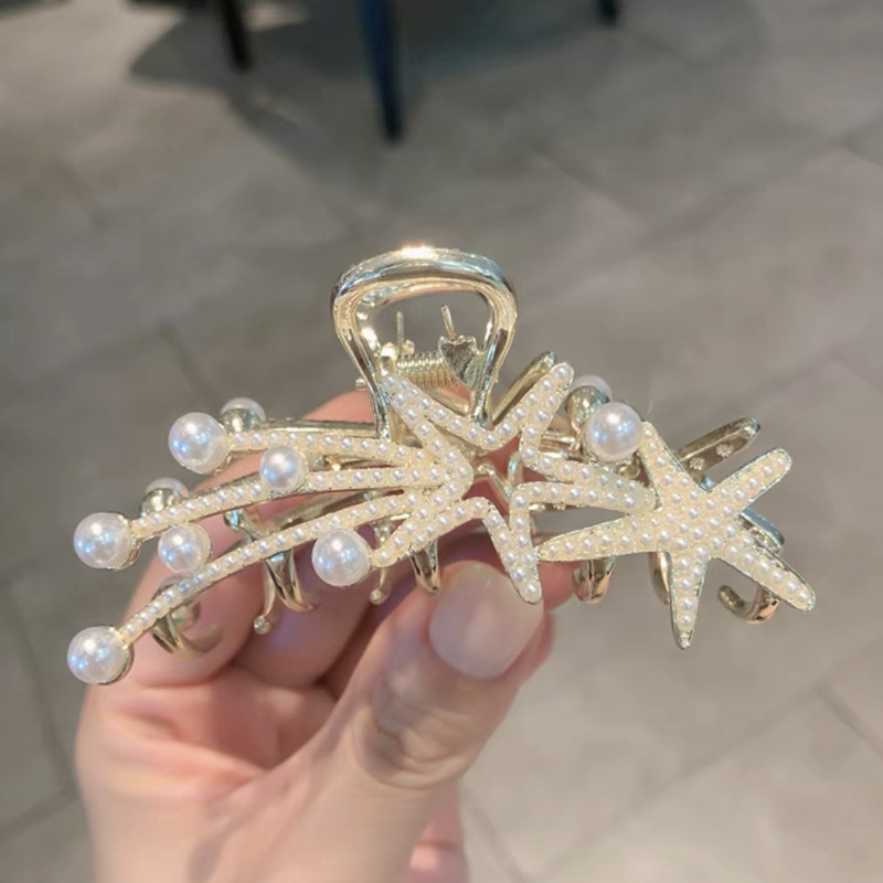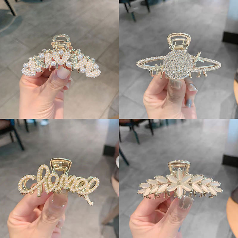 | nameOriginal | Korean fashion temperament Pearl Rhinestone medium grab clip factory direct metal net red hair clip ins shark clip |