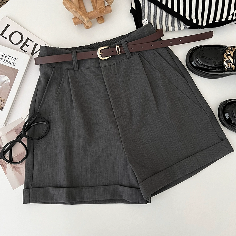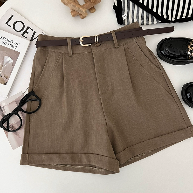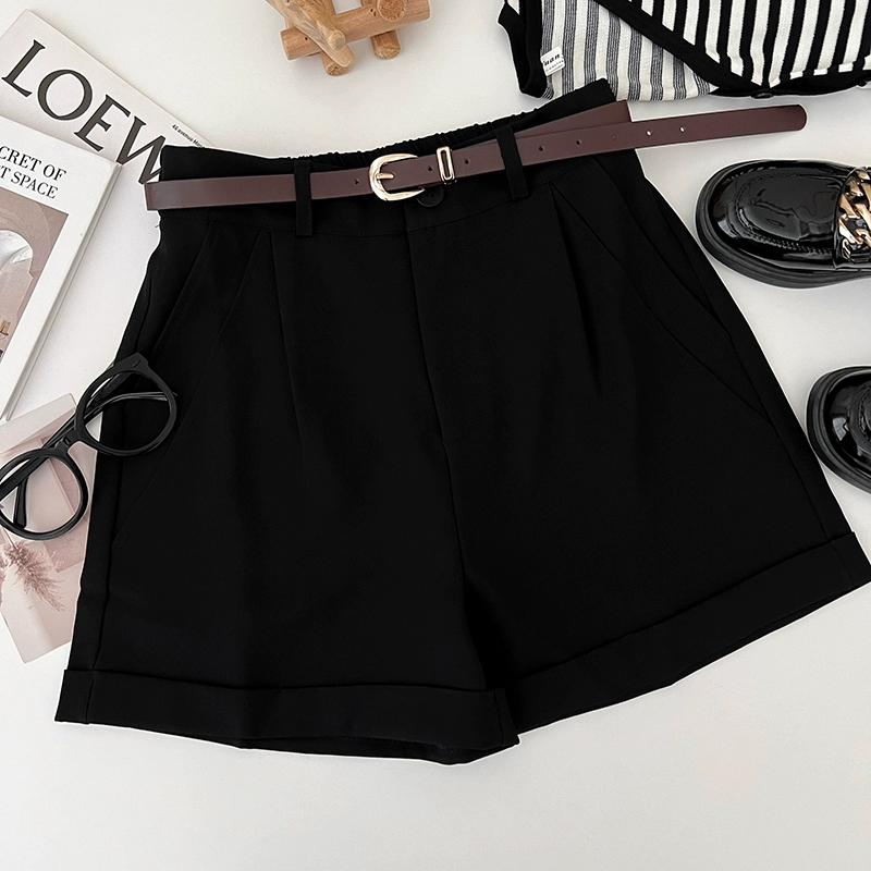 | nameOriginal | Korean fashion versatile solid color elastic high waist slim suit wide leg pants casual pants rolled hem shorts with belt for women |