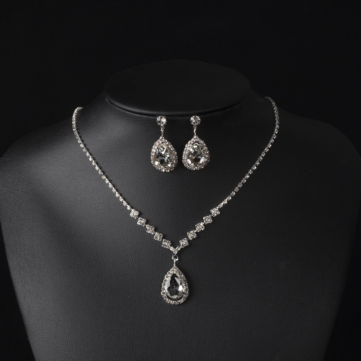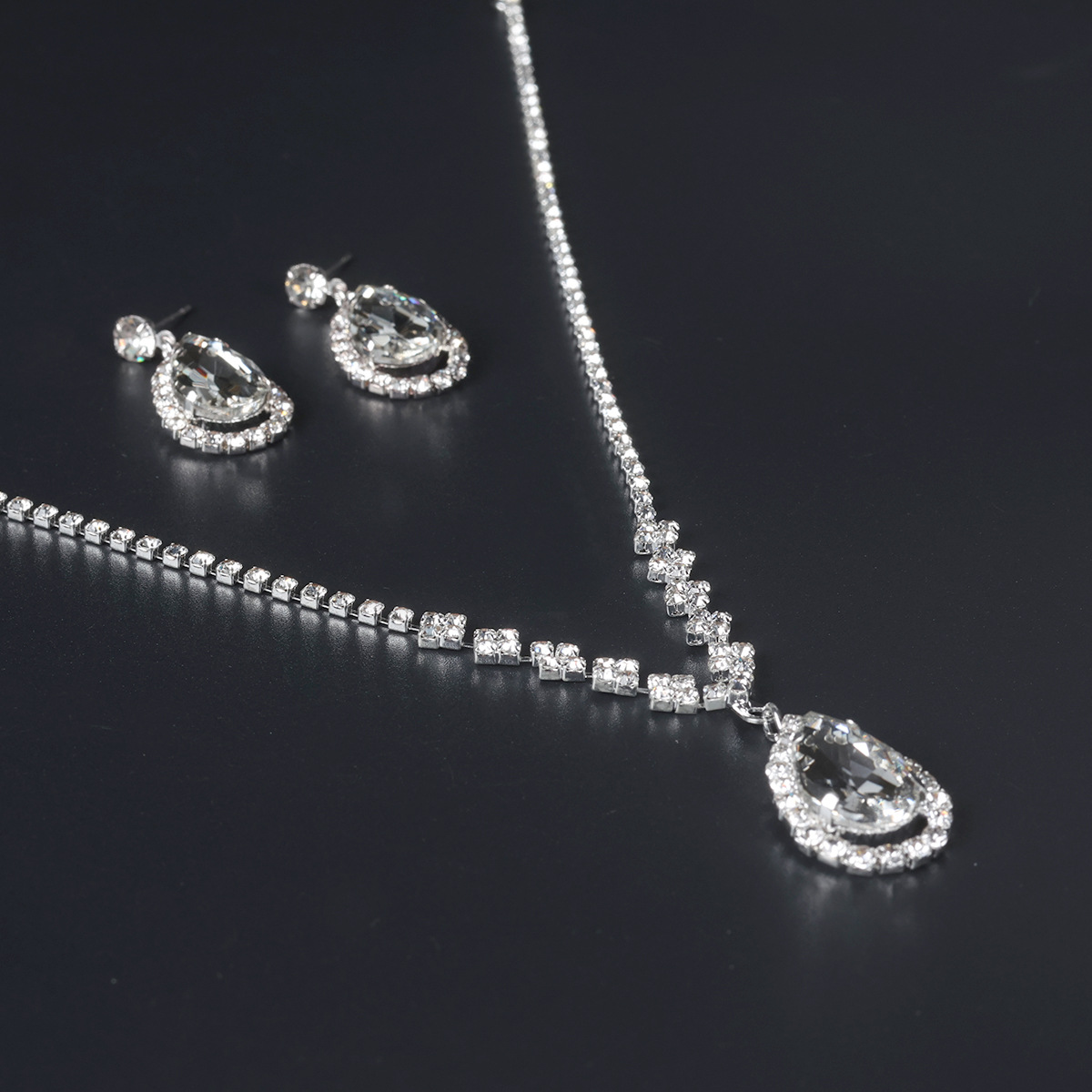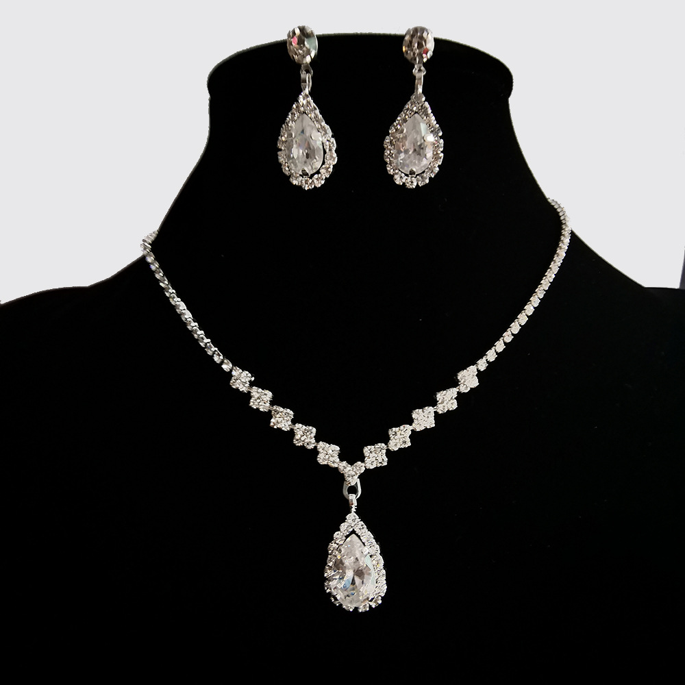 | nameOriginal | Korean fashion wedding bright diamond water drop necklace geometric Bride Wedding Jewelry earrings two-piece set N5571 |