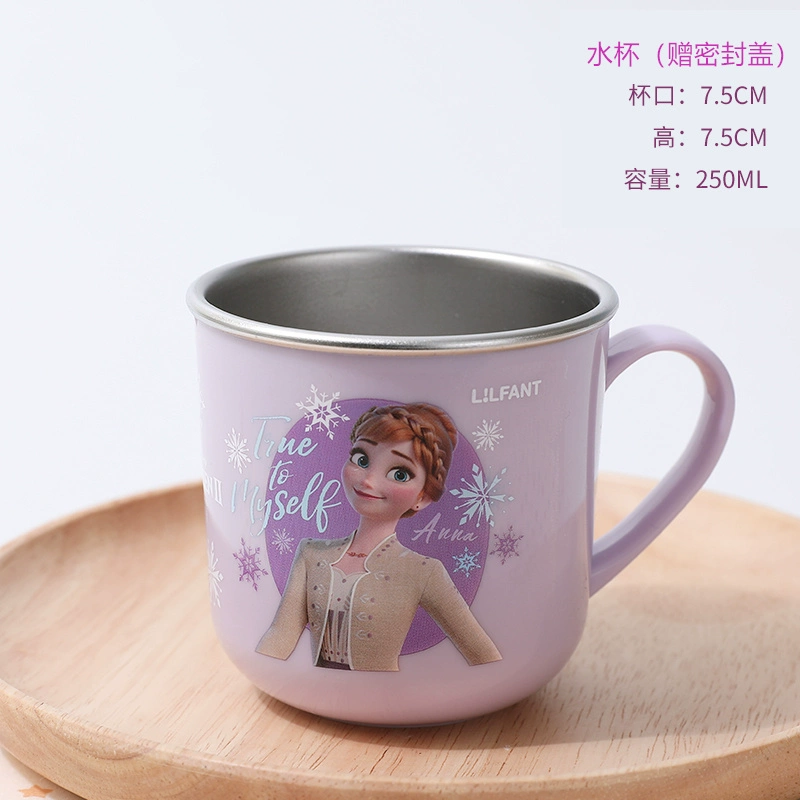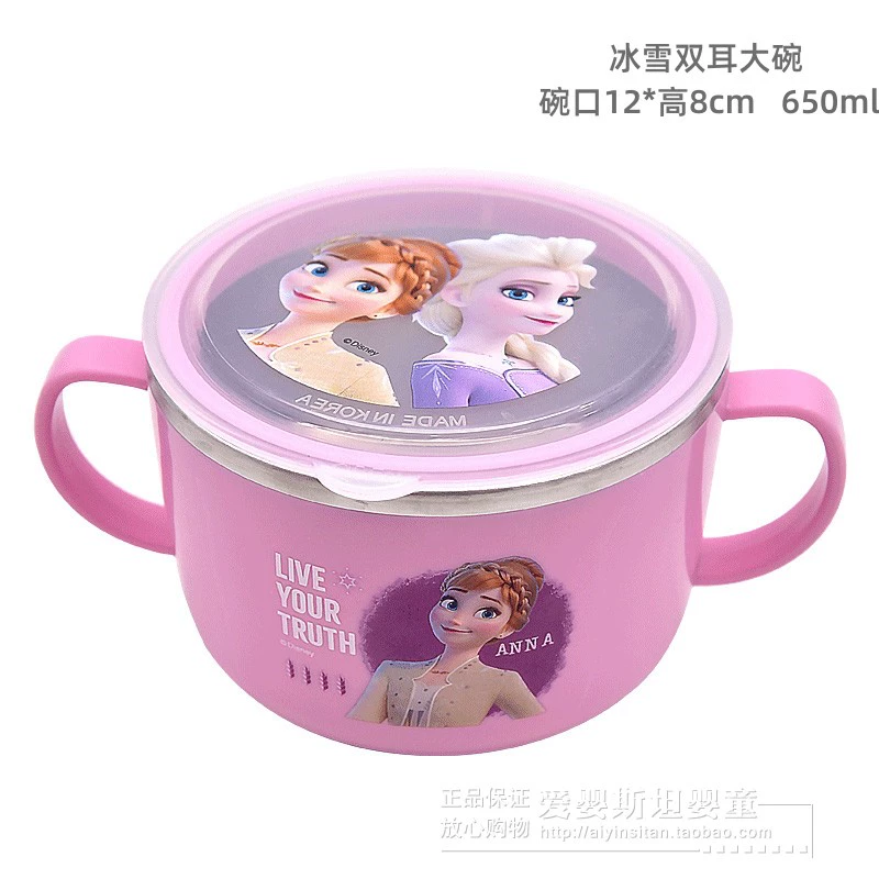 Korean Frozen Princess Elsa children’s rice bowl anti-fall and anti-scald baby chopsticks spoon fork stainless steel tableware set