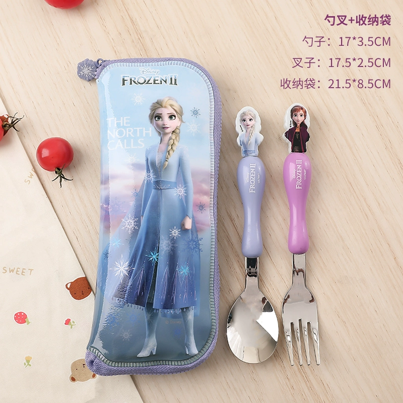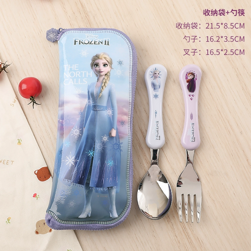 Korean Frozen Princess Elsa children's rice bowl anti-fall and anti-scald baby chopsticks spoon fork stainless steel tableware set