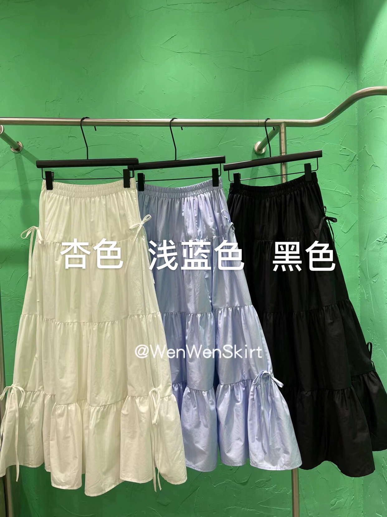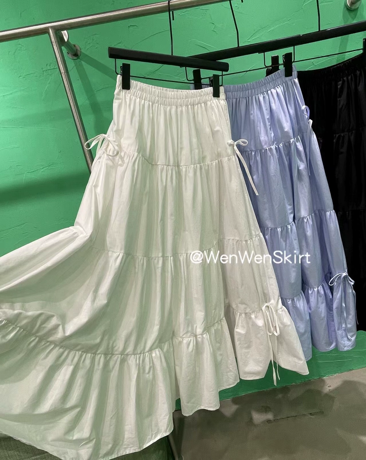 Korean gentle embellishment patchwork long skirt with bow