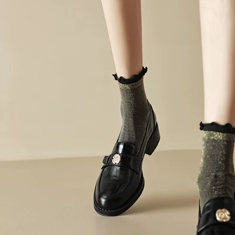 | nameOriginal | Korean gold and silver double screw lace socks for women spring and summer thin color-blocked bright silk fungus edge mid-tube socks |
