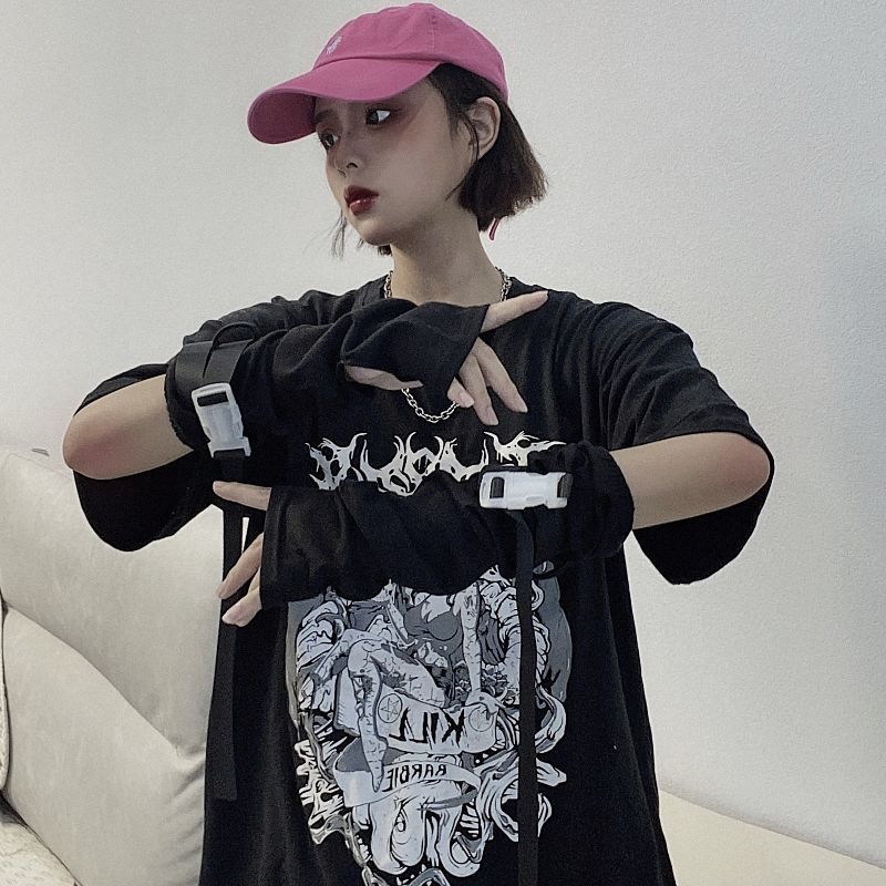 | nameOriginal | Korean Harajuku style Dark Funeral personalized buckle oversleeve men's and women's hip hop hand sleeve arm sleeve fashion gloves |
