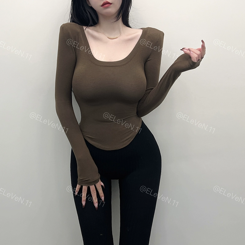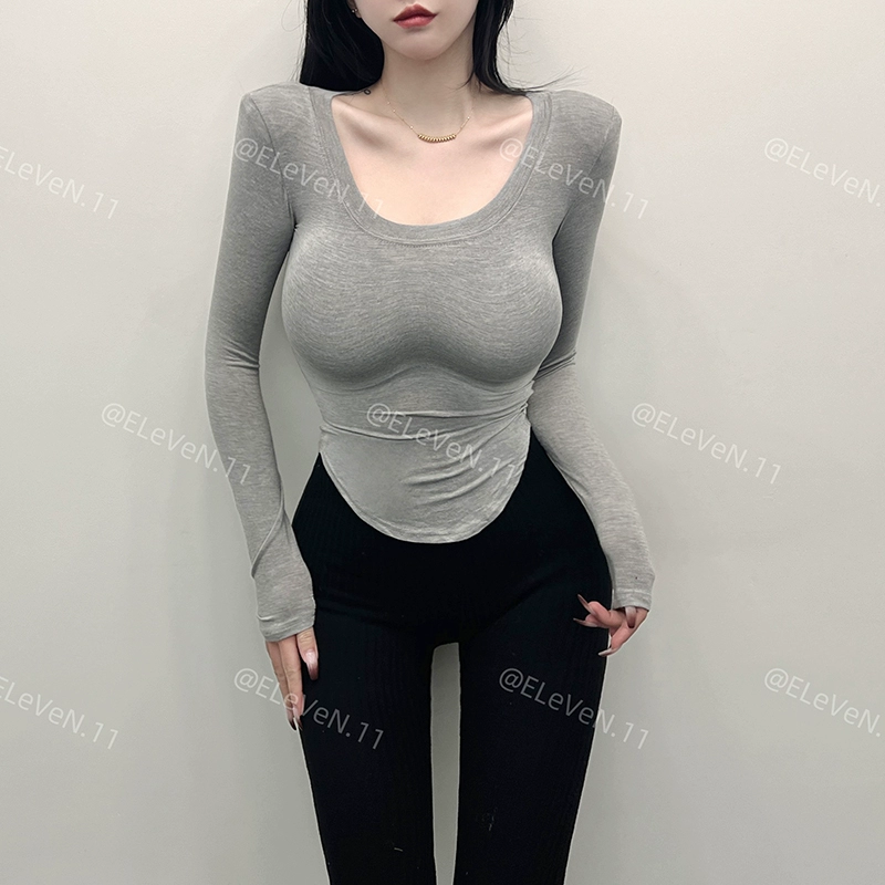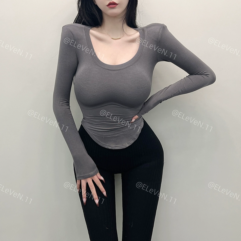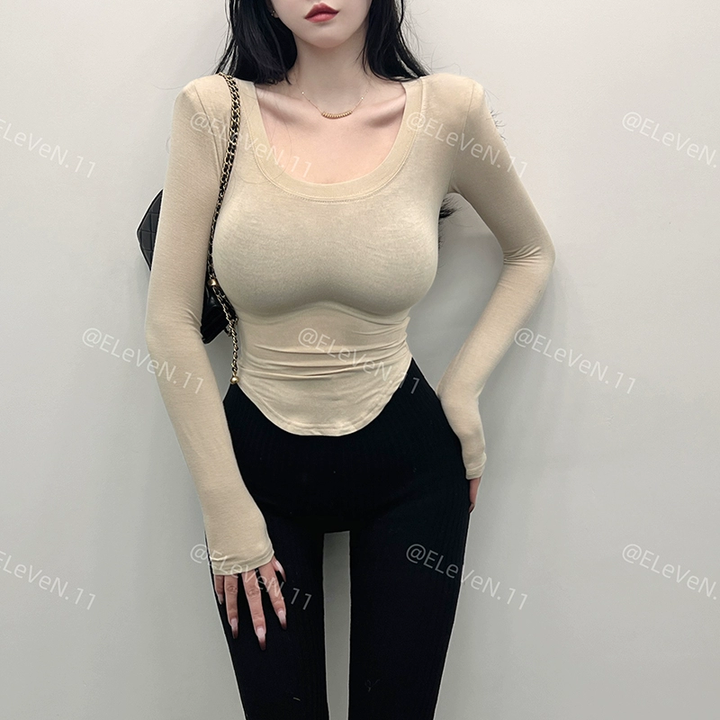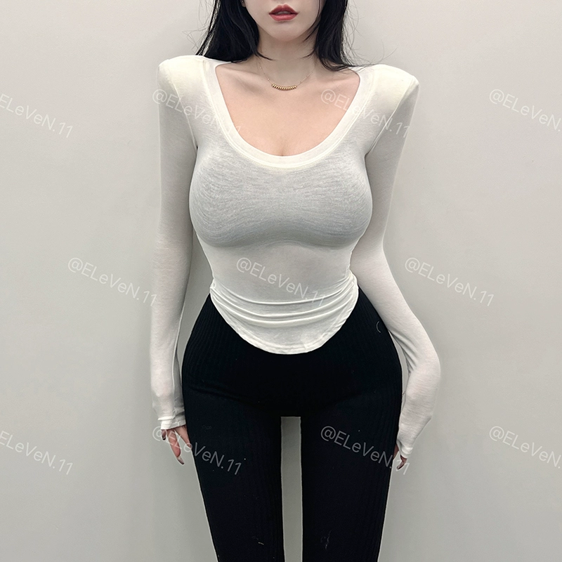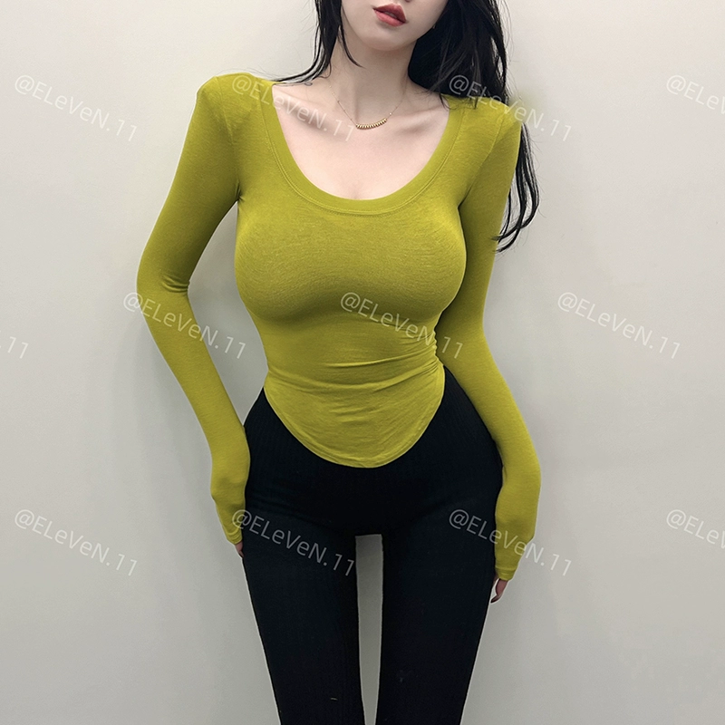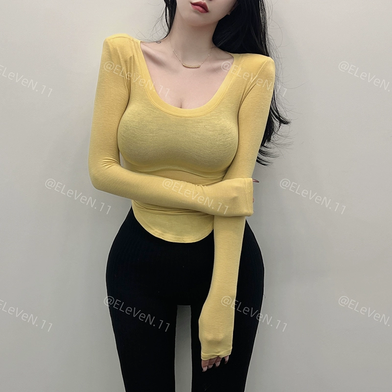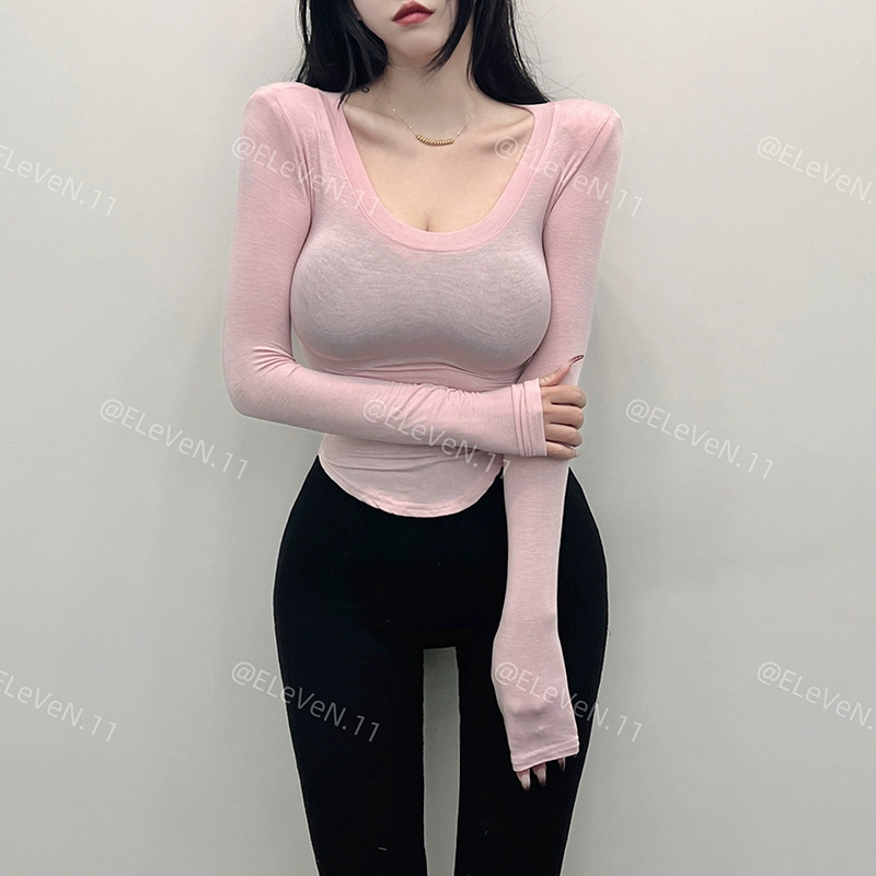 Korean ins base slightly translucent long-sleeved tencel cotton