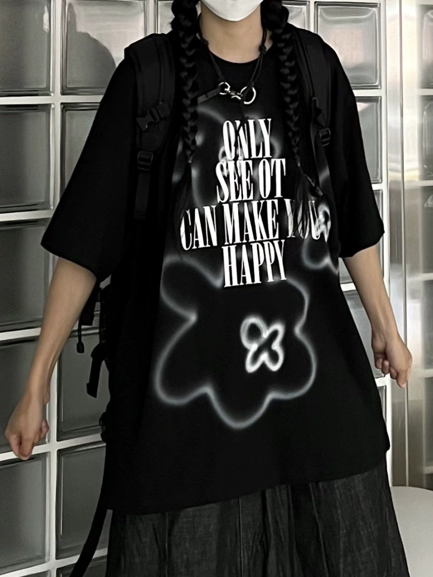 | nameOriginal | Korean ins niche design graffiti flower print casual and versatile loose pure cotton heavyweight short-sleeved T-shirt for men and women |