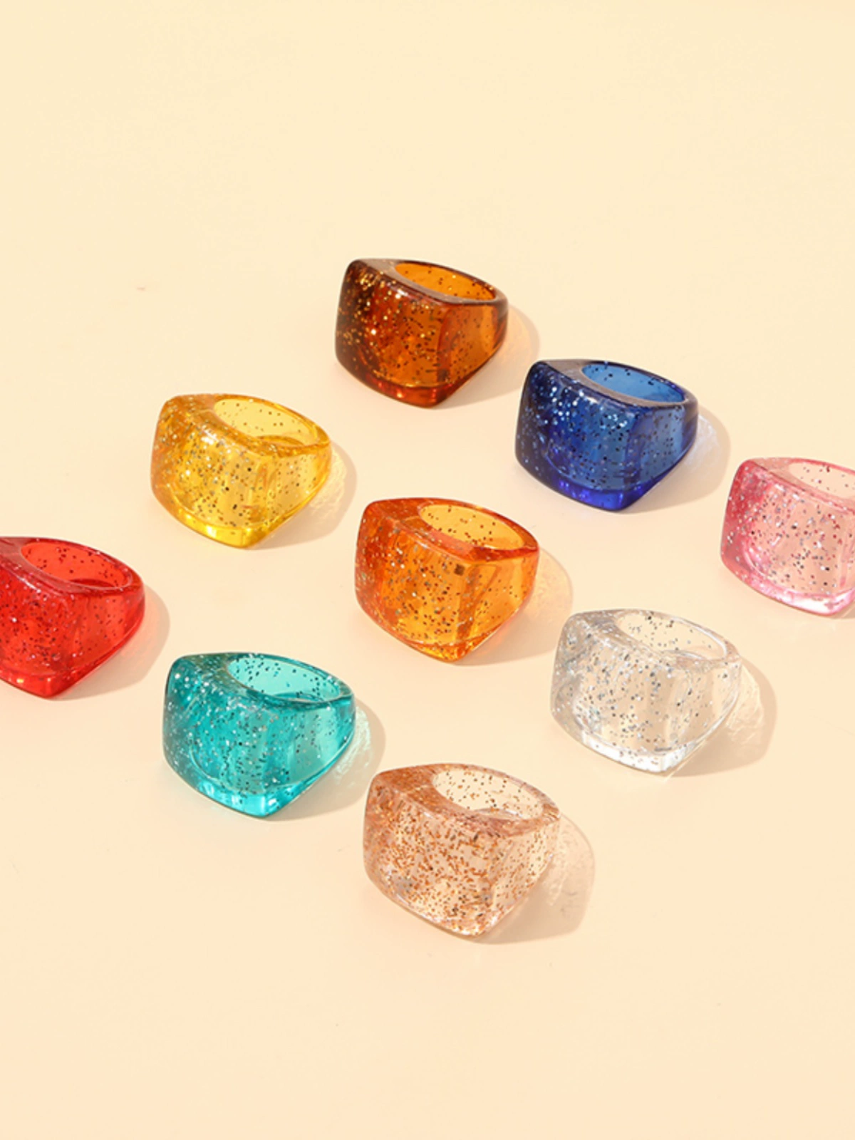 | nameOriginal | Korean ins resin female ring glitter silver foil multi-color ring internet celebrity acrylic resin ring |