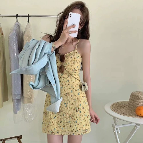 | nameOriginal | Korean ins small fresh floral suspender skirt for women summer vacation style sweet little chic waist dress |