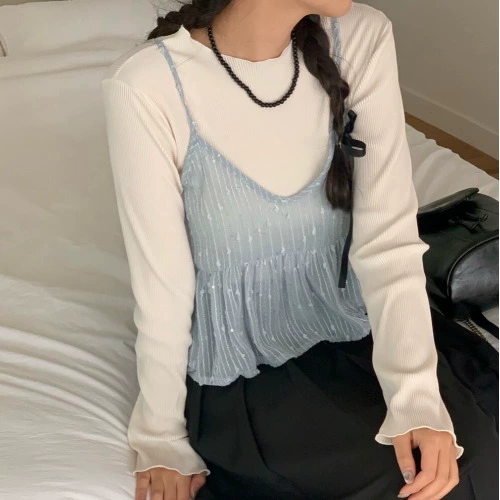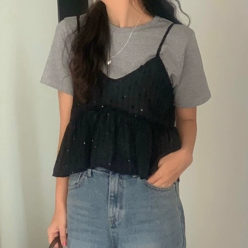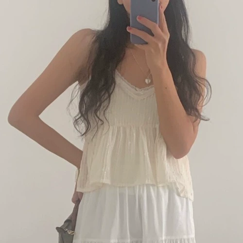Korean ins summer French niche temperament V-neck loose and versatile layered lace camisole women's outer top