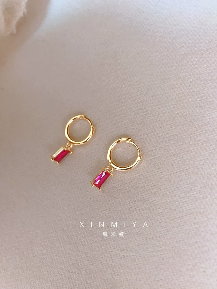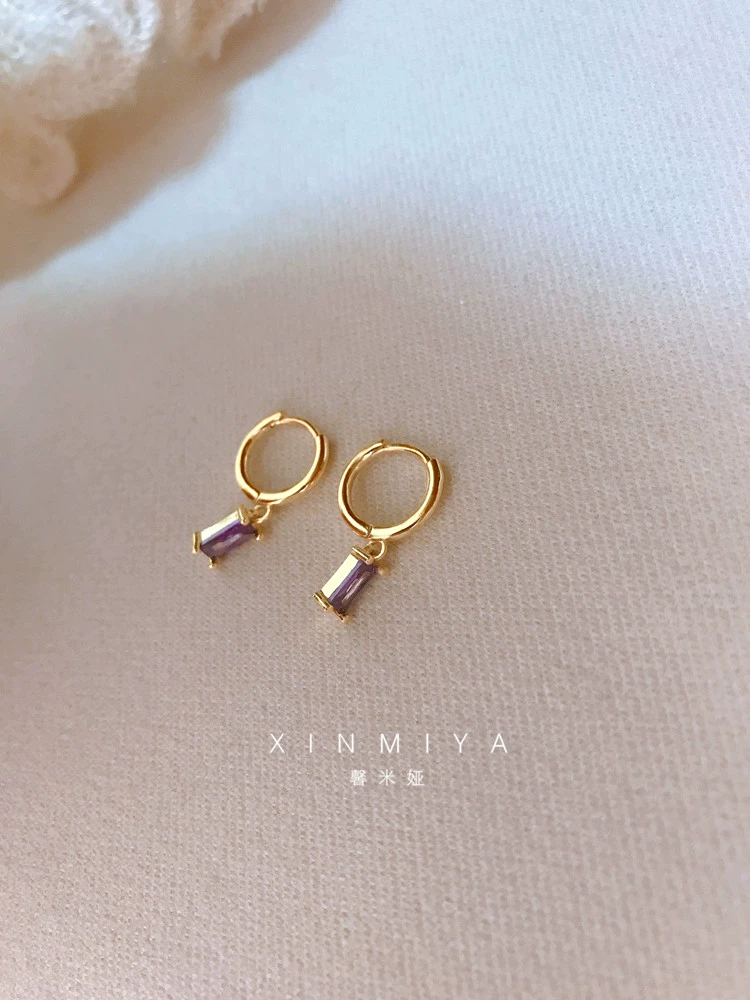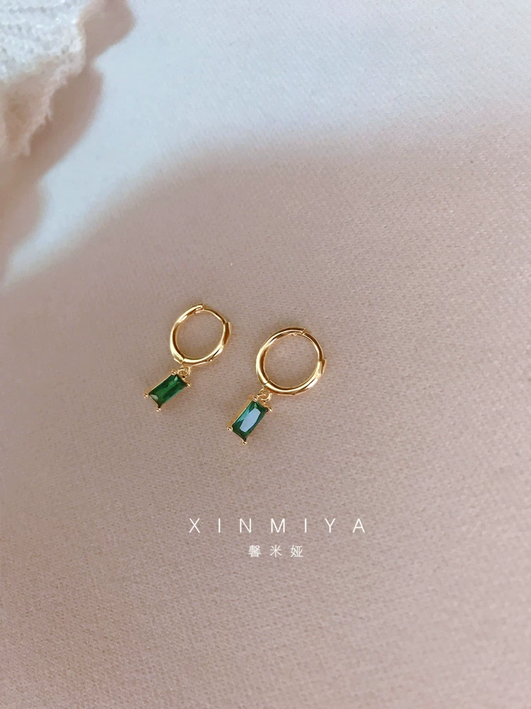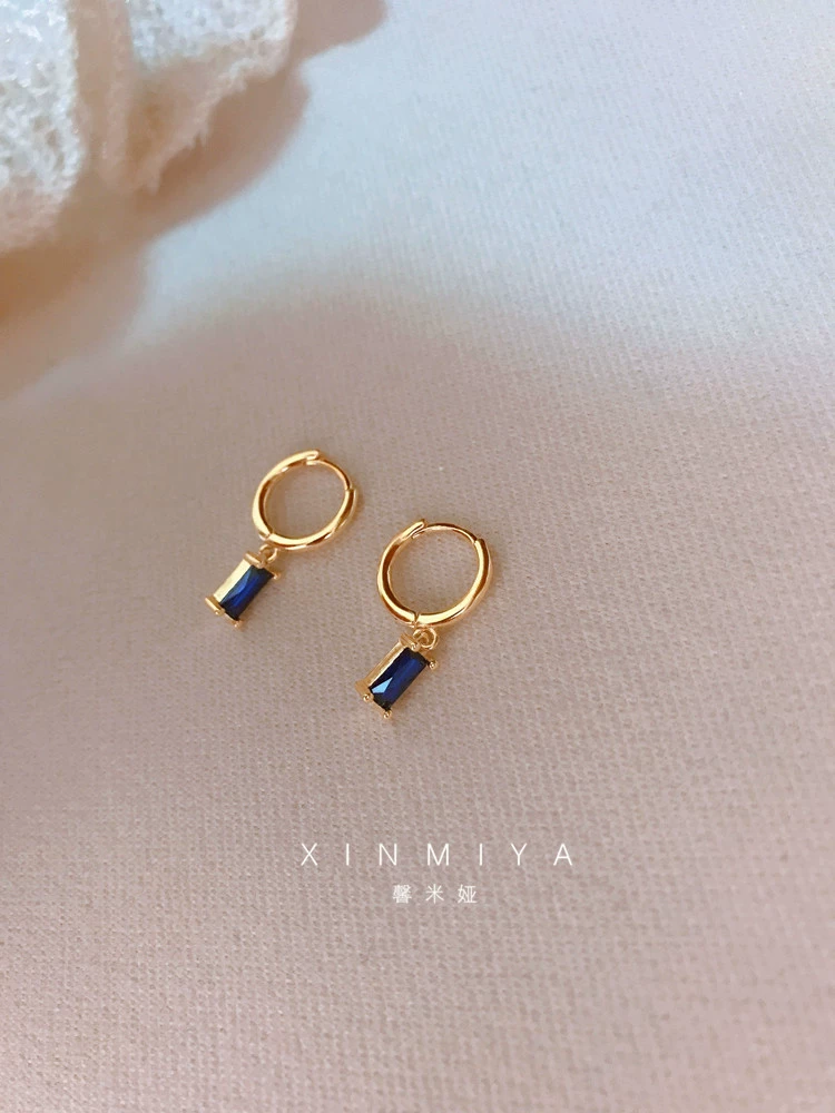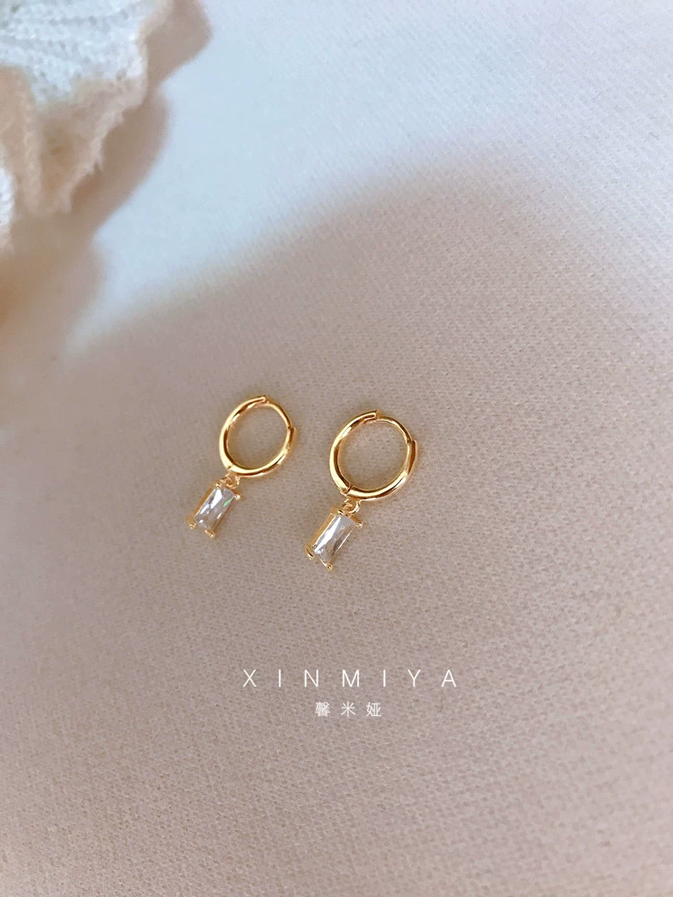 Korean Internet celebrity exquisite earrings Alex’s same style rectangular zircon small pendant earrings simple and versatile earrings for men and women