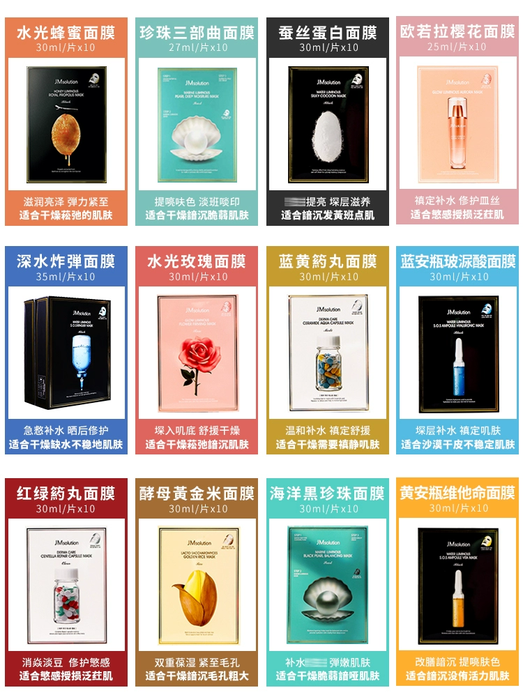 | nameOriginal | Korean JM facial mask for pregnant women, honey pearl trilogy essence, hydrating first aid, depth bomb, orange sheep placenta |
