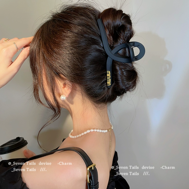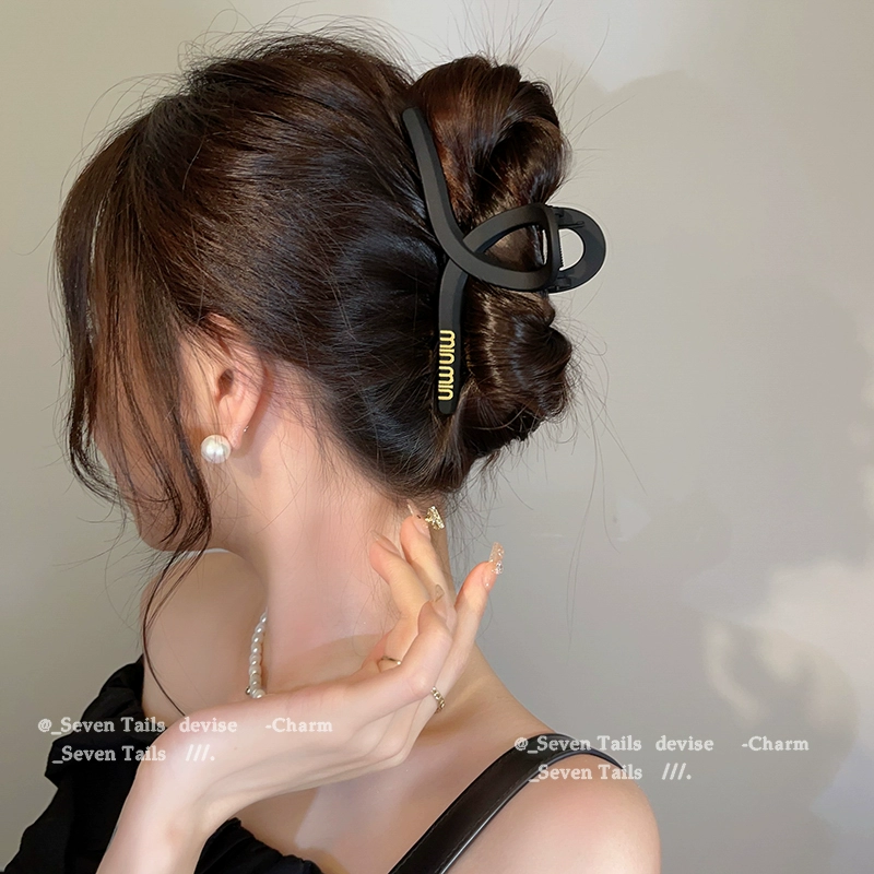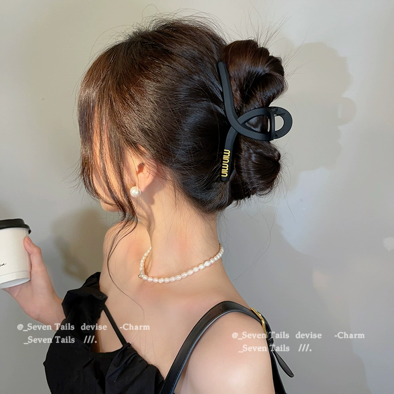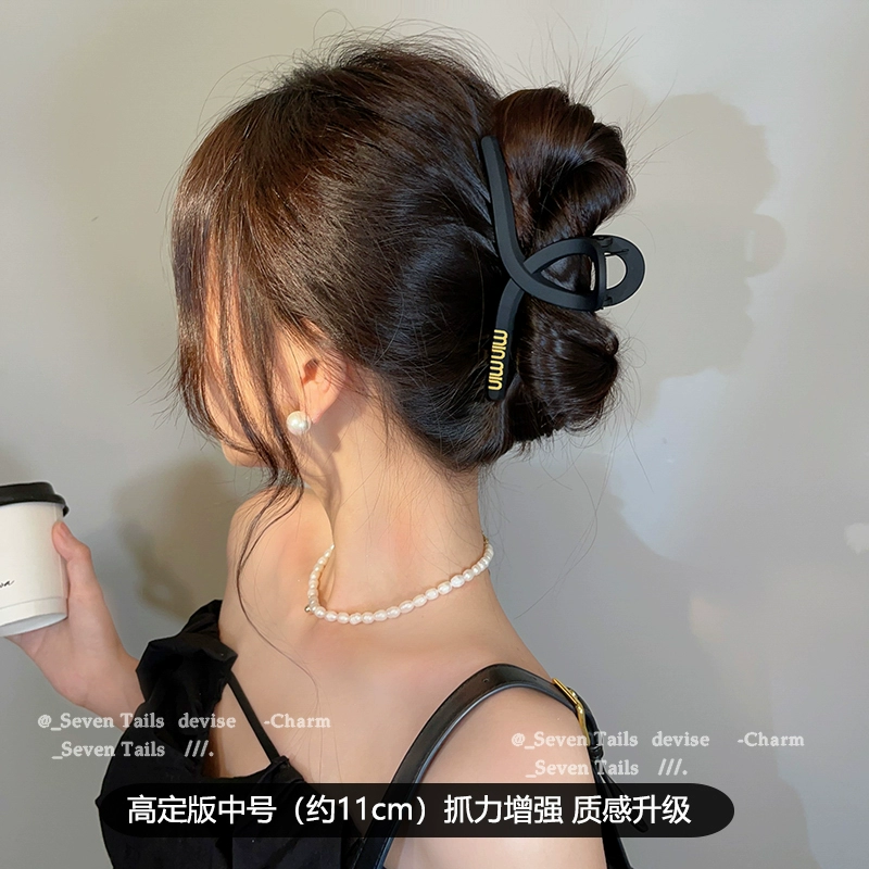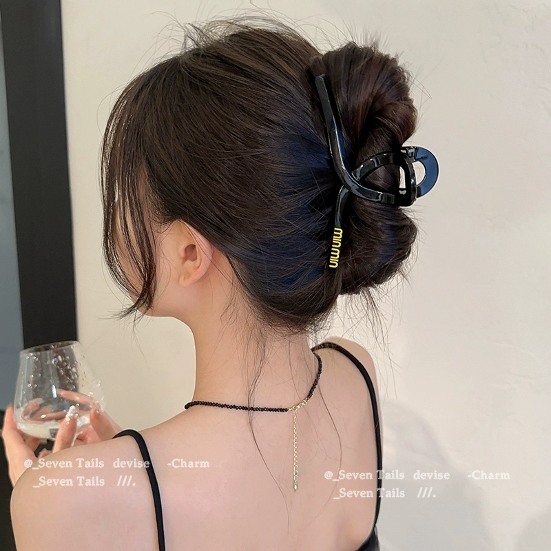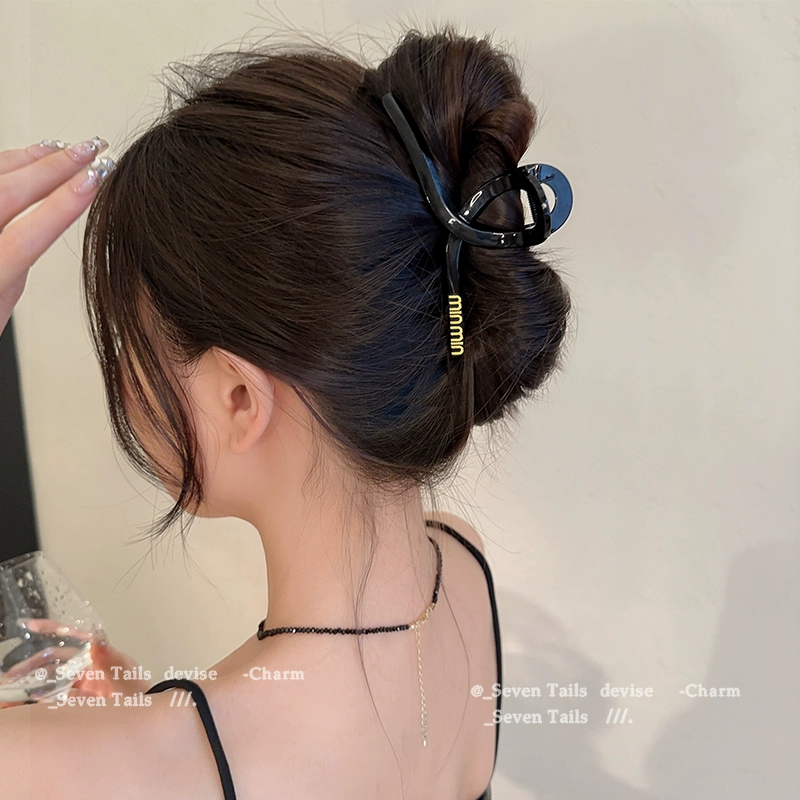 Korean letters black grabbed high -level sensory temperament shark clip 2024 new hair clip female back head jewelry