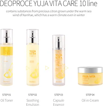 Experience the invigorating energy of freshly grown citron, basked in warm sunlight and winds with our YUJA VITA CARE 10 skincare line. Infused with citron extract and 99% pure citron essential oil, our products provide natural effects and fragrance to your skin. Our oil toner, soothing emulsion, oil in cream, and capsule essence deliver refreshing moisture without any sticky feeling.