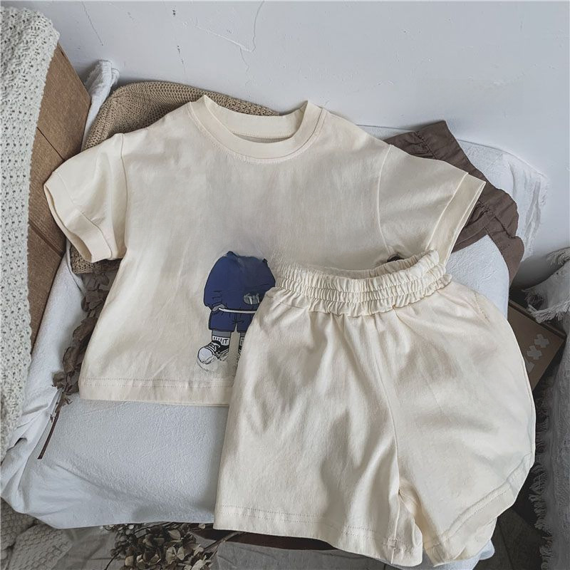 | nameOriginal | Korean New Children's Cartoon Cute Letter Short-sleeved T-shirt Shorts Set Two-piece Thin Summer Set for Baby Boys and Girls |