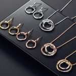 Korean New Popular Wedding Earrings Distinctive Circle Highlight Alloy Diamond Double Color Electroplated Earrings Necklace Set