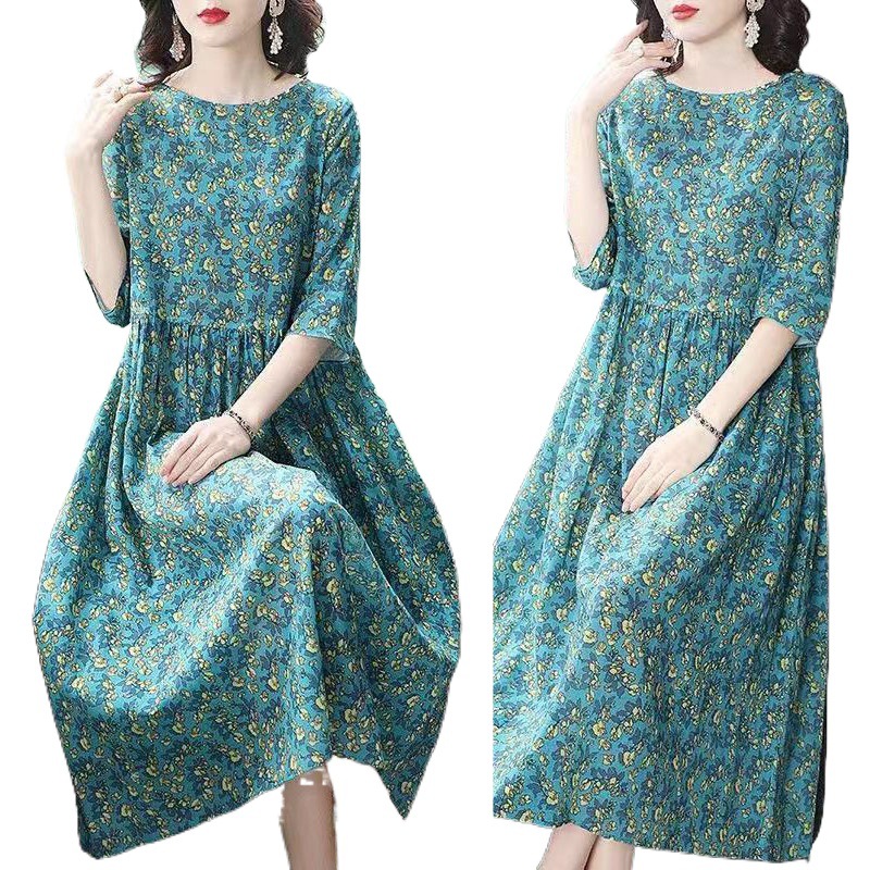 Korean New Style Fresh Style Floral dress plus size Women’s Clothing Noble and Western Style Chubby Lady Middle-aged Mother’s Clothing