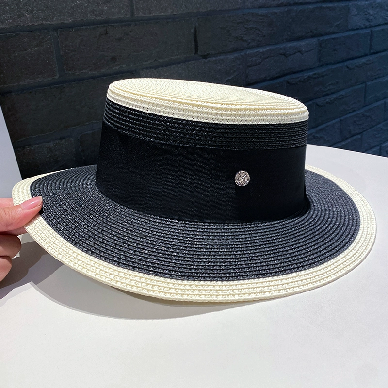 | nameOriginal | Korean niche chic flat-top straw hat for women in summer, versatile big-brimmed sun hat, British retro M-label hat trend |