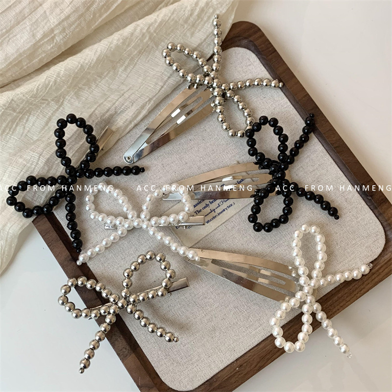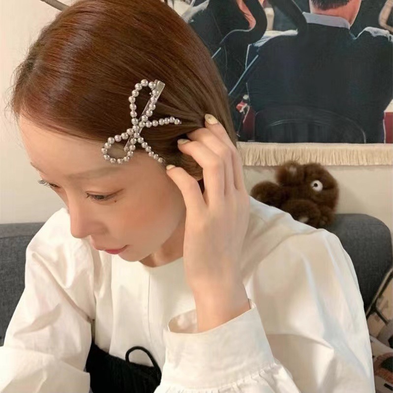 | nameOriginal | Korean Pearl Bow Hairpin Silver Ballet Style Duckbill Clip Japanese Style Bangs Clip Woven Beaded Ponytail Clip |