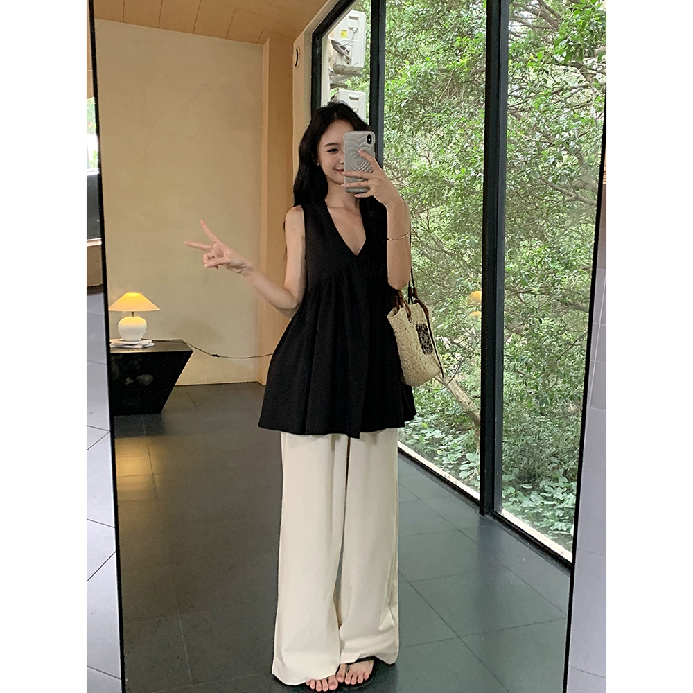 | nameOriginal | Korean pleated V-neck casual pants ins top |