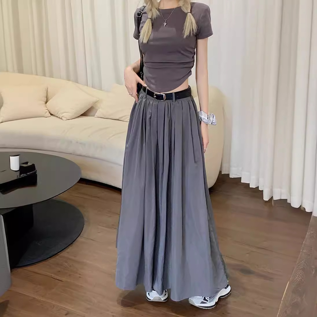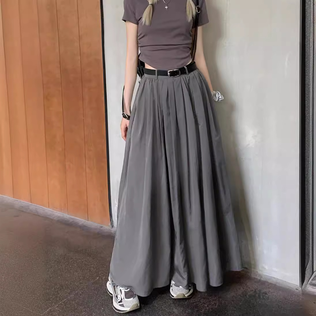 | nameOriginal | Korean preppy style Gray high waist draping skirt women's summer temperament pleated skirt sense A- line long skirt |