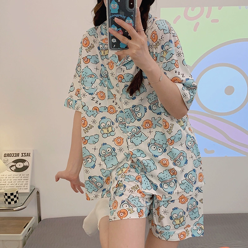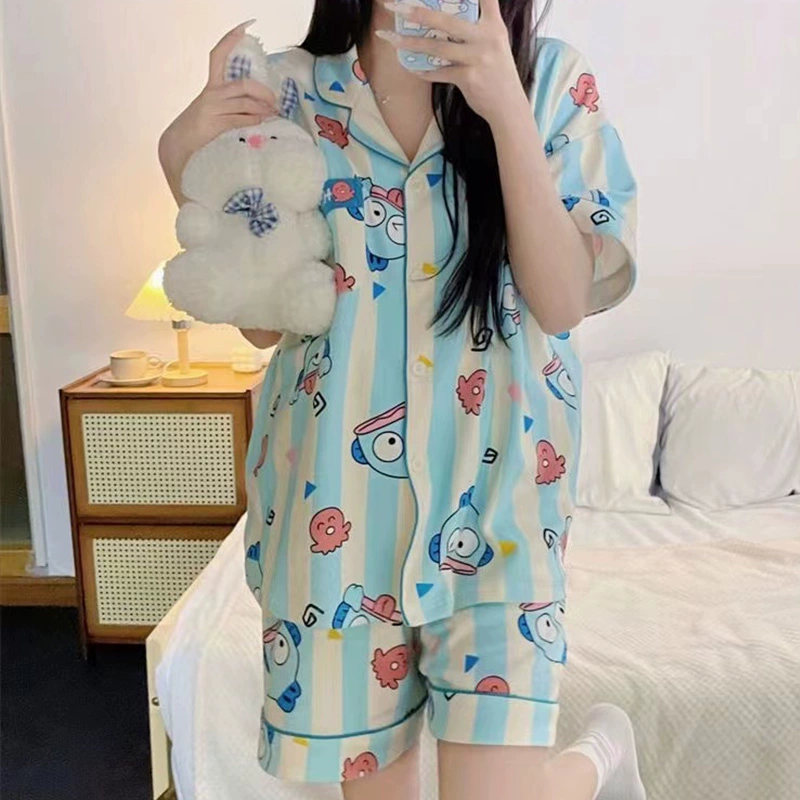 Korean pure cotton female clownfish Japanese style striped pajamas