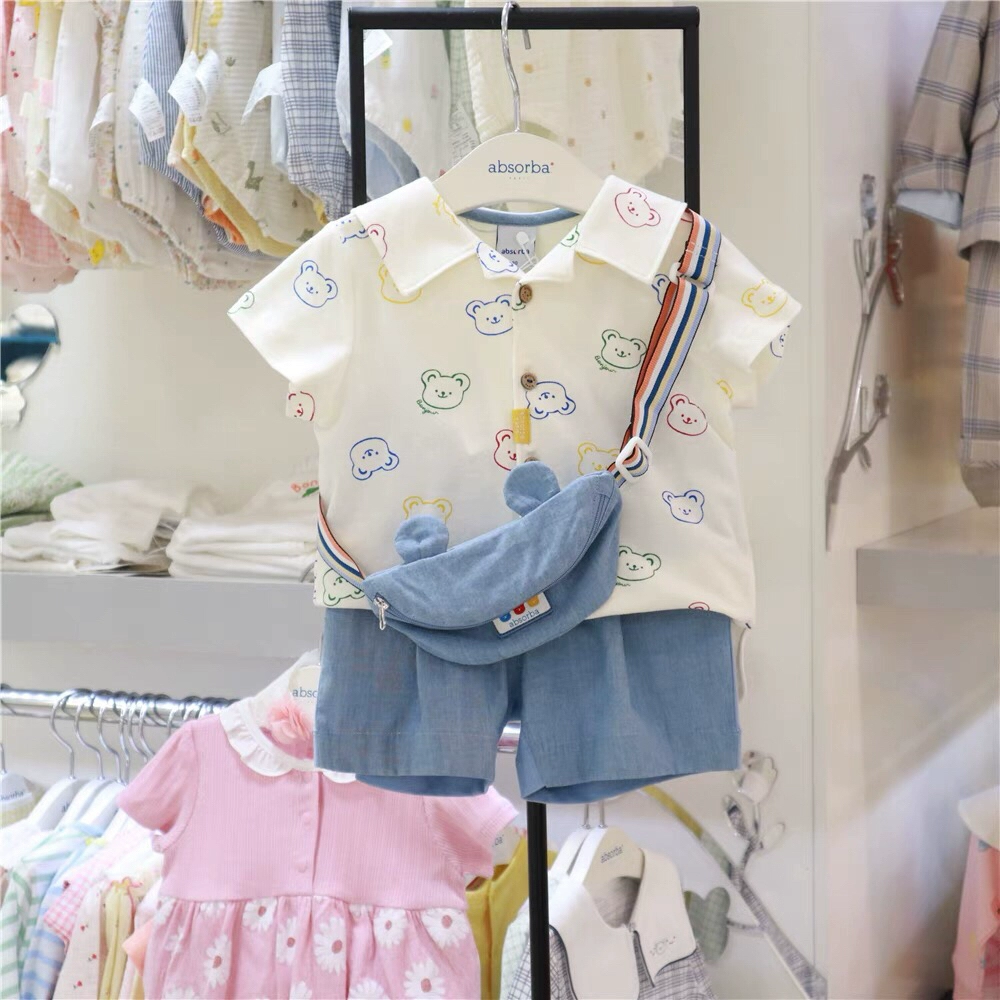 | nameOriginal | Korean pure cotton lapel bear all over printed shirt for children |