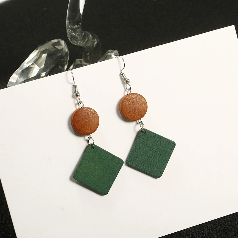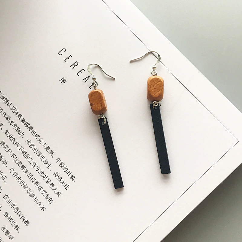 | nameOriginal | Korean retro artistic contrasting geometric wood earrings |
