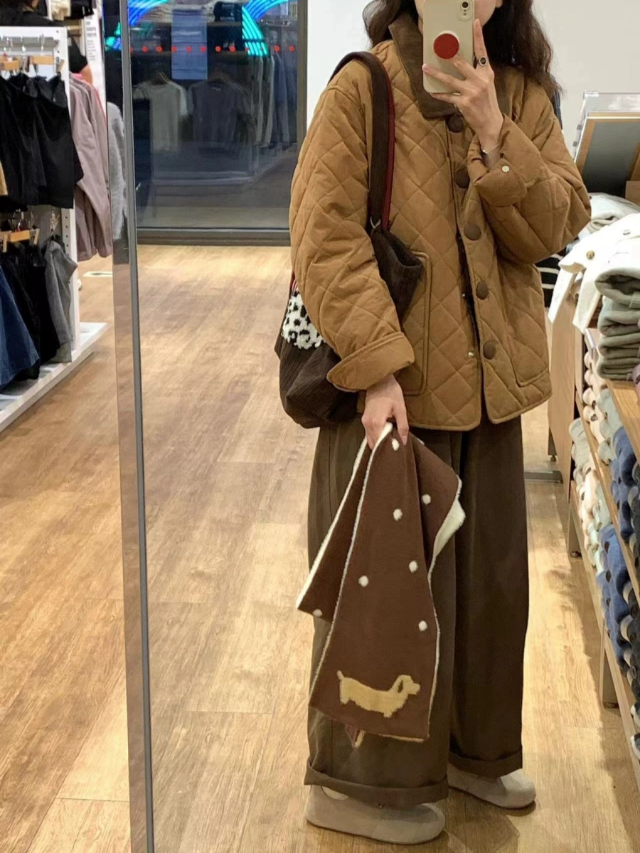 | nameOriginal | Korean retro contrasting color lapel rhombus cotton jacket for women in winter new design casual loose thickened cotton jacket |