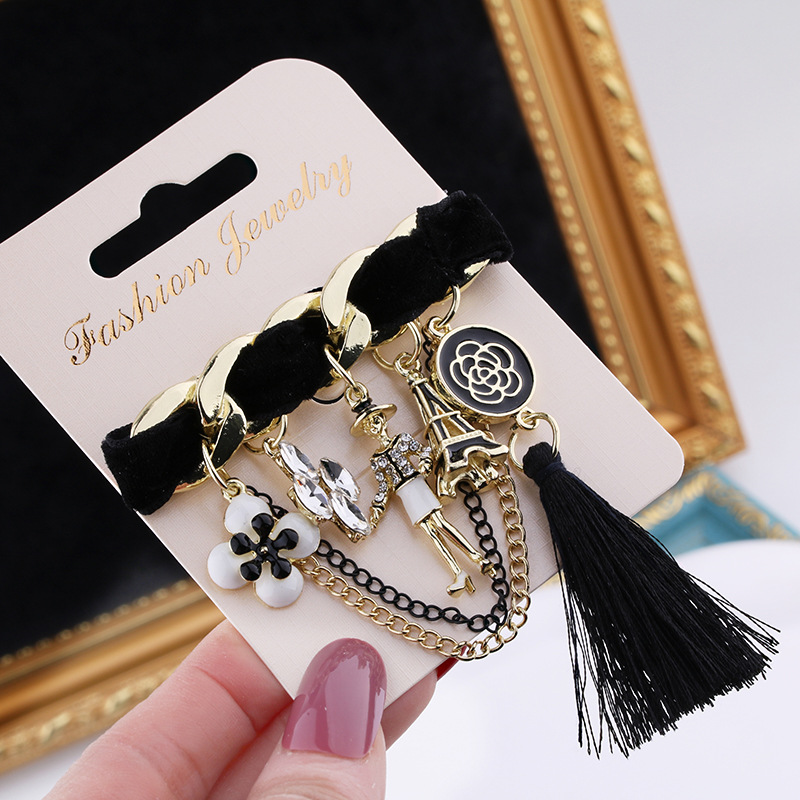 | nameOriginal | Korean Retro Pearl Flower Brooch Fragrant Style Chest European and American Creative Geometric Tassel Black Pin Badge |
