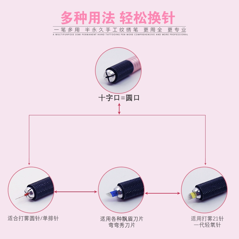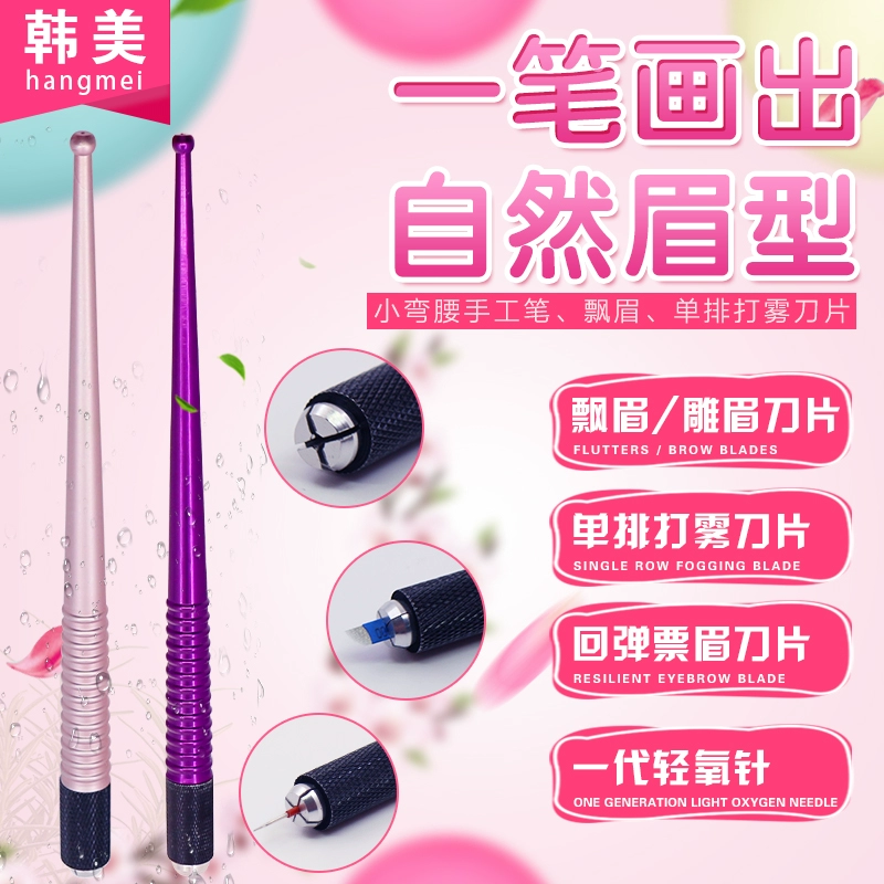 | nameOriginal | Korean semi-permanent tattoo handmade pen metal floating eyebrow pen embroidery eyebrow pen fog eyebrow pen cross knife holder round mouth fogging pen |