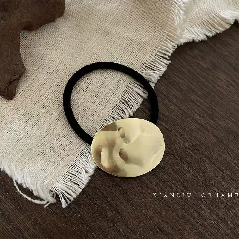 Korean simple brushed metal hair rope with high elasticity and temperament