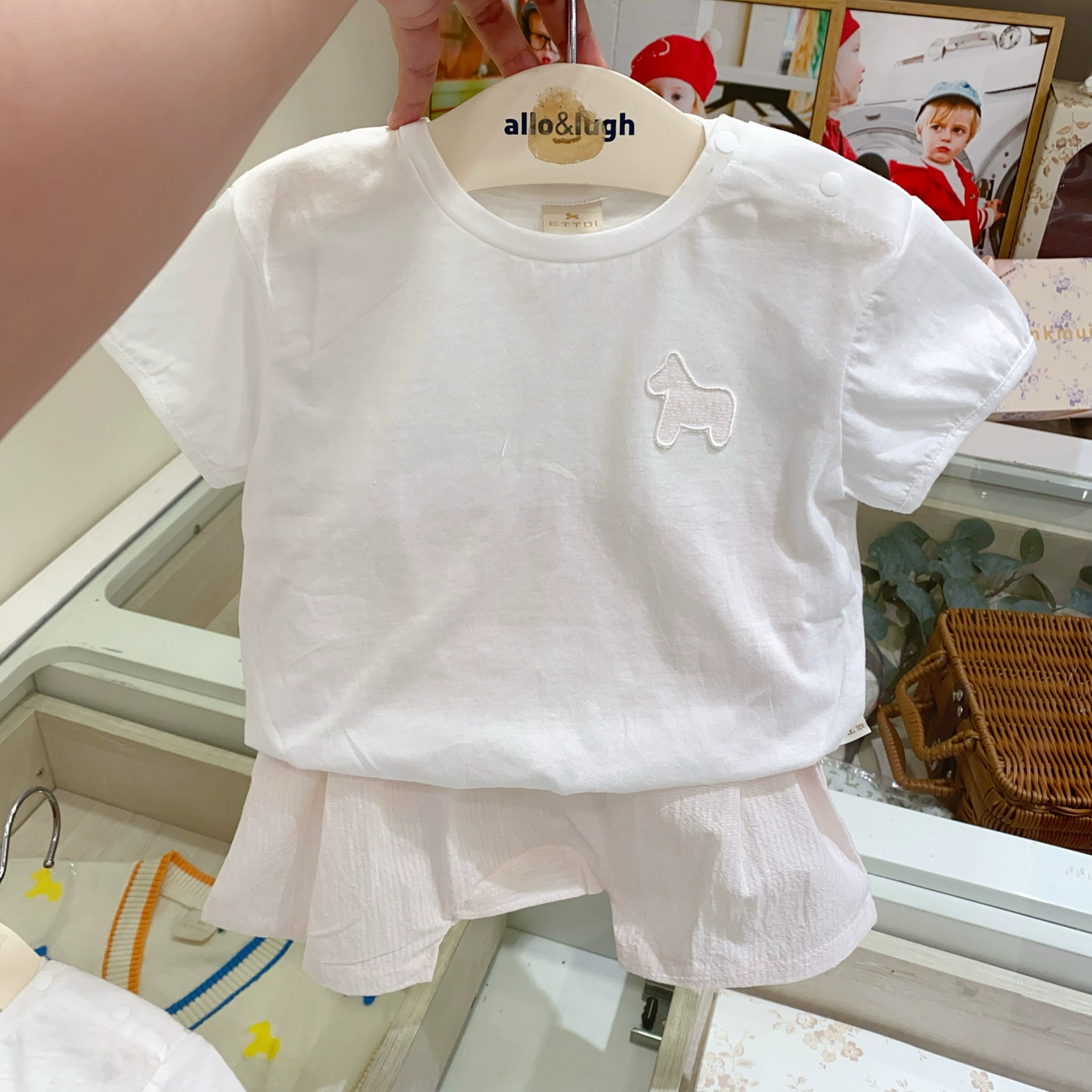 Korean simple round neck short sleeve top bread pants children’s clothing