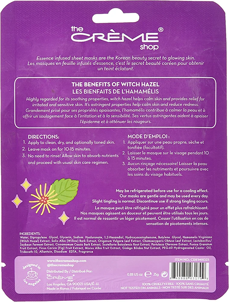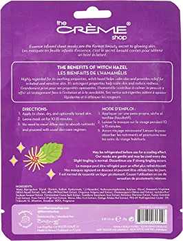 The Crème Shop Witch Hazel Infused Face Mask, Korean Skincare. Acne, Pimple Clearing & Soothing.