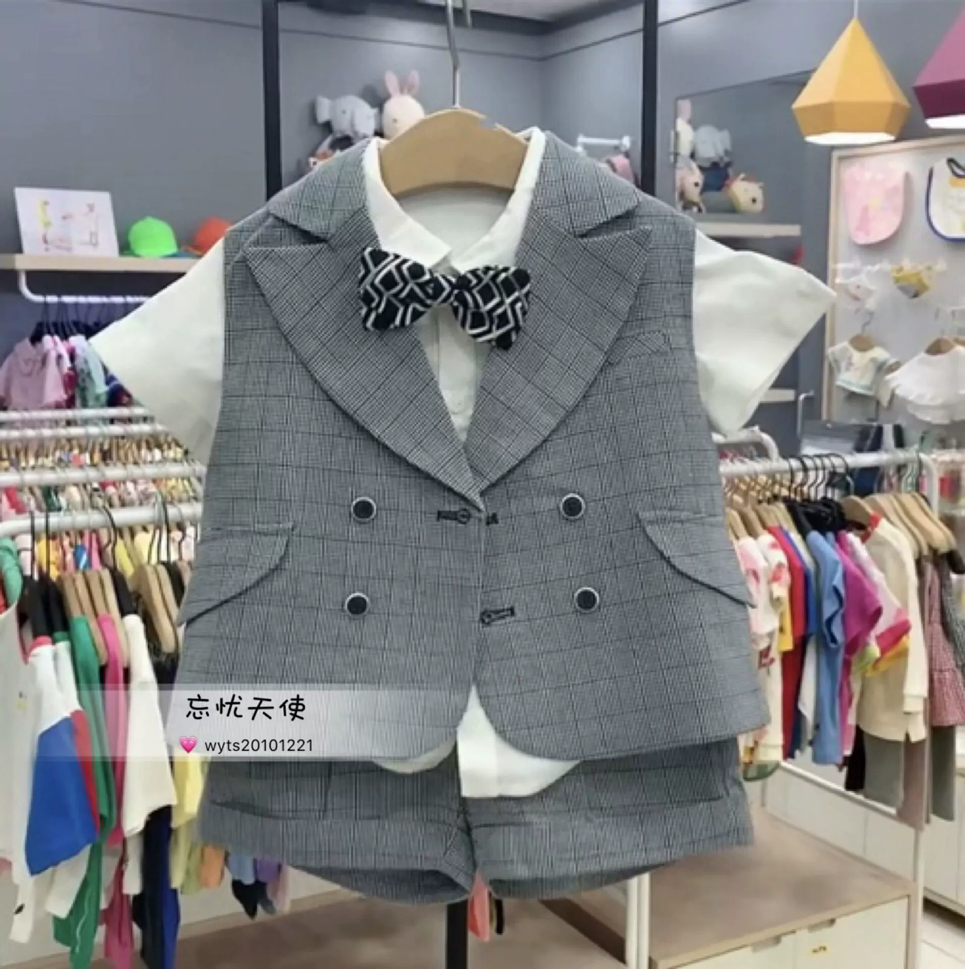 | nameOriginal | Korean small and medium-sized children's clothing, summer new style, handsome gentleman, bow tie, short-sleeved shirt, vest, three-piece set, dress |
