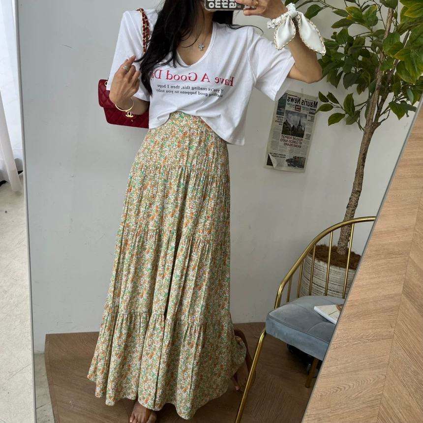 | nameOriginal | Korean spring and autumn petite casual floral skirt |