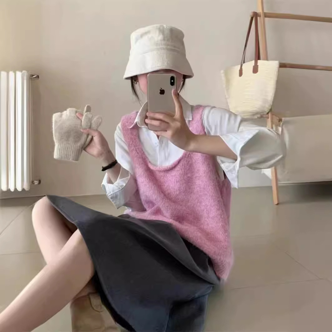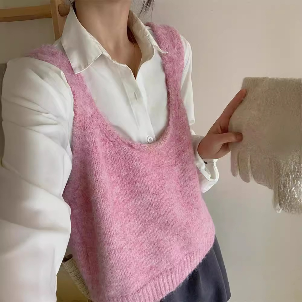 Korean Spring and Summer New Fashion Knitted Vest Women's Loose Soft Waxy Collar Sling Sleeveless Stacked Top Trendy