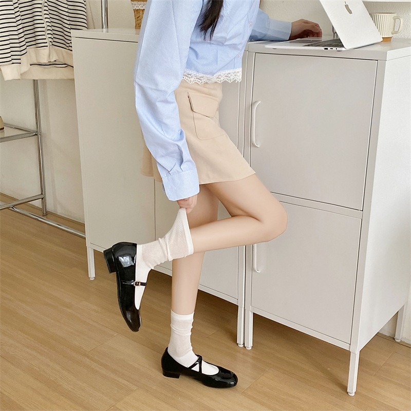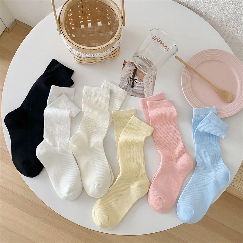 Korean Spring and Summer Thin Solid Color Pile Socks Women’s Hollow-out Carnet Mid-Socks Ins Trendy Internet Popular Japanese Style Moon Socks