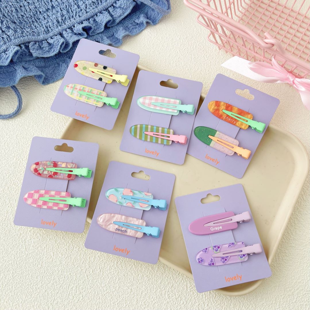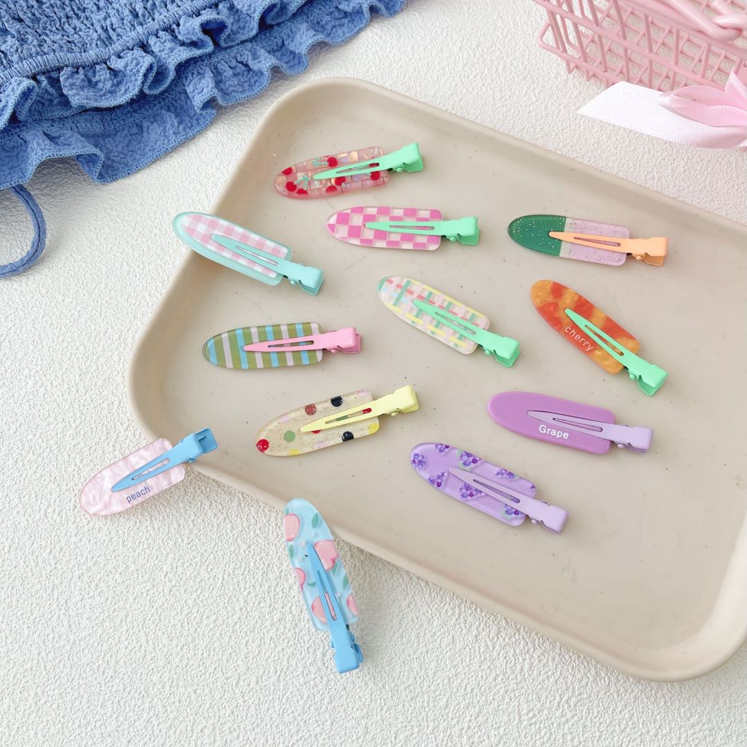 | nameOriginal | Korean Style 2 Pack Juice Plaid Striped Seamless Hairpin Cute Grape Cherry Bangs Cosmetic Hairpin |