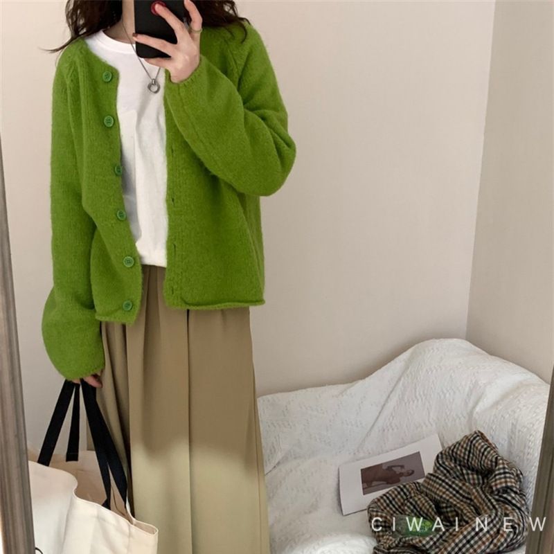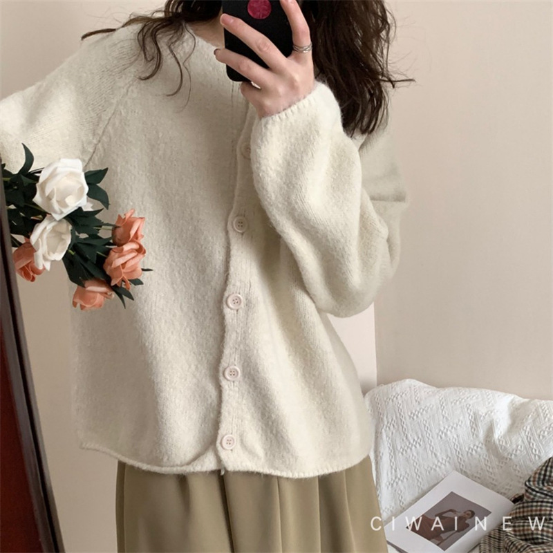 | nameOriginal | Korean style 2023 autumn and winter New elegant round neck soft glutinous knitted cardigan women's gentle style loose slimming sweater outer wear |