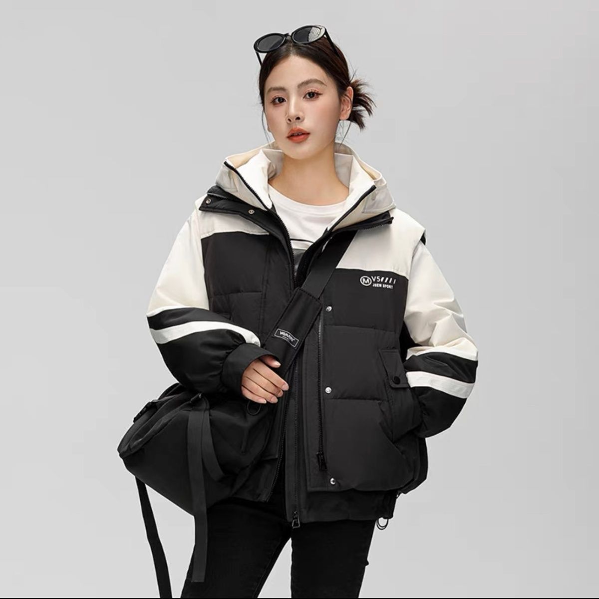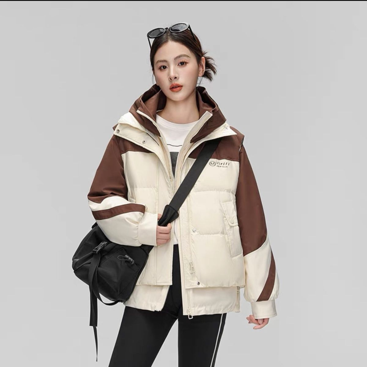 | nameOriginal | Korean-style 2023 New Down Jacket Women's Short High-end Two-piece Set Contrast Color Stitching Loose Fashionable Casual Jacket Trendy |