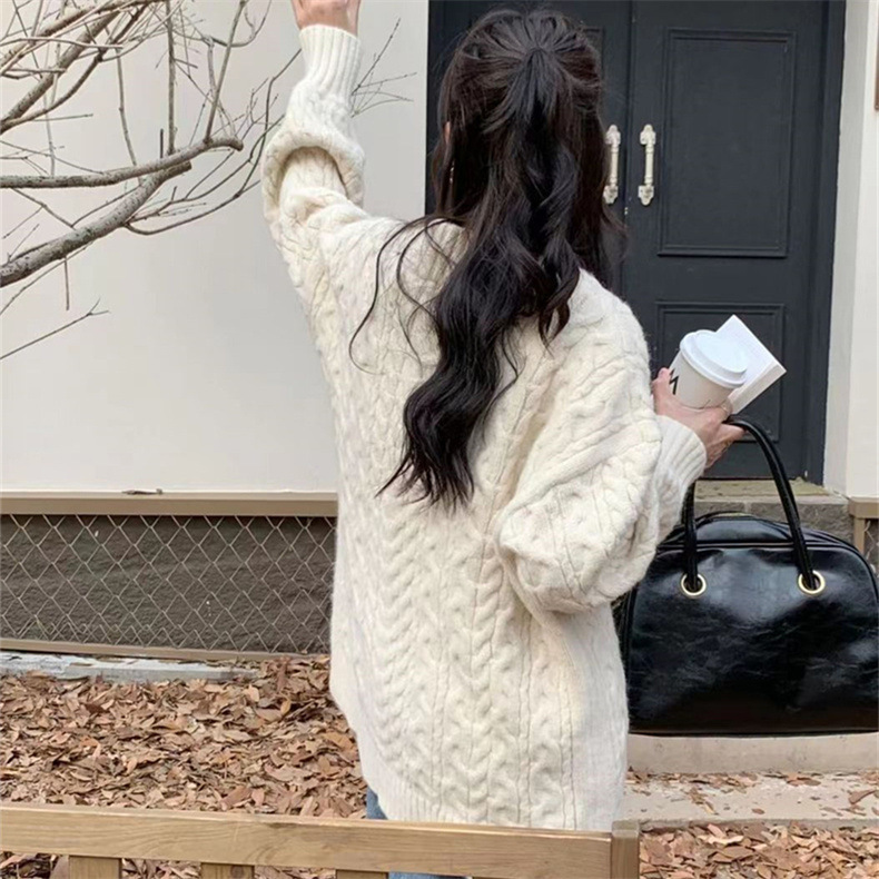 Korean Style 2023 New Lazy Style Sweater Women’s Autumn and Winter Pullover Loose Outer Wear Top Thick Twist Sweater