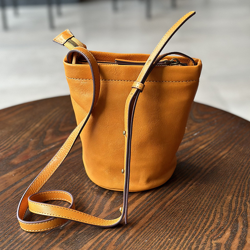 | nameOriginal | Korean Style 2023 New Top Layer Cowhide Small Bucket Bag Women's Shoulder Crossbody Mini Bag Vintage All-match Vegetable Tanned Leather |