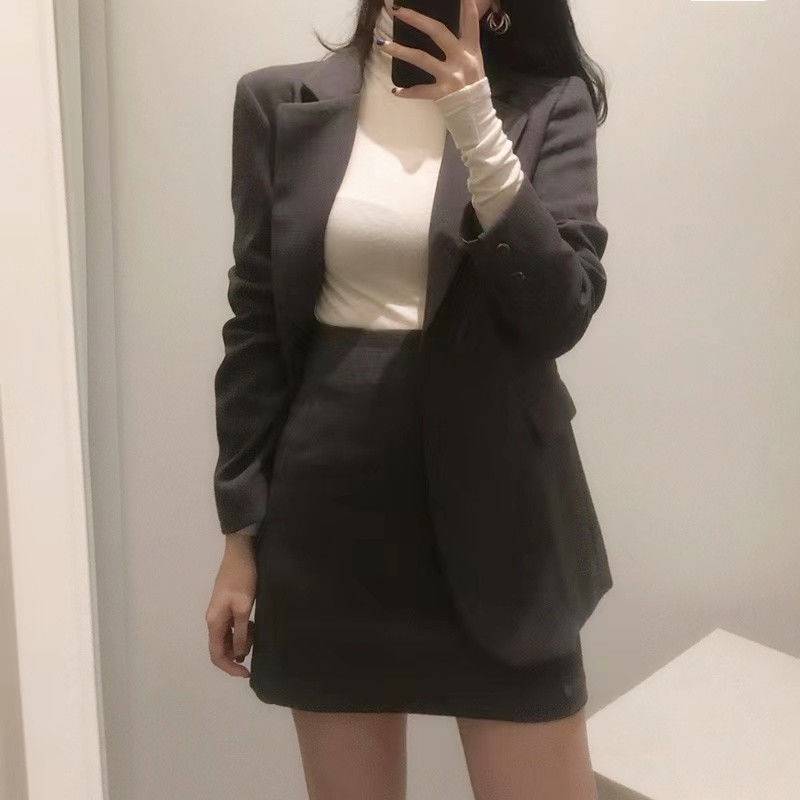 | nameOriginal | Korean Style 2023 Spring and Autumn Slim-fit Suit Women's Suit Collar Top High Waist Half-length Skirt Two-piece Set |