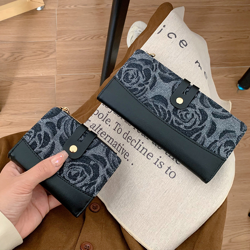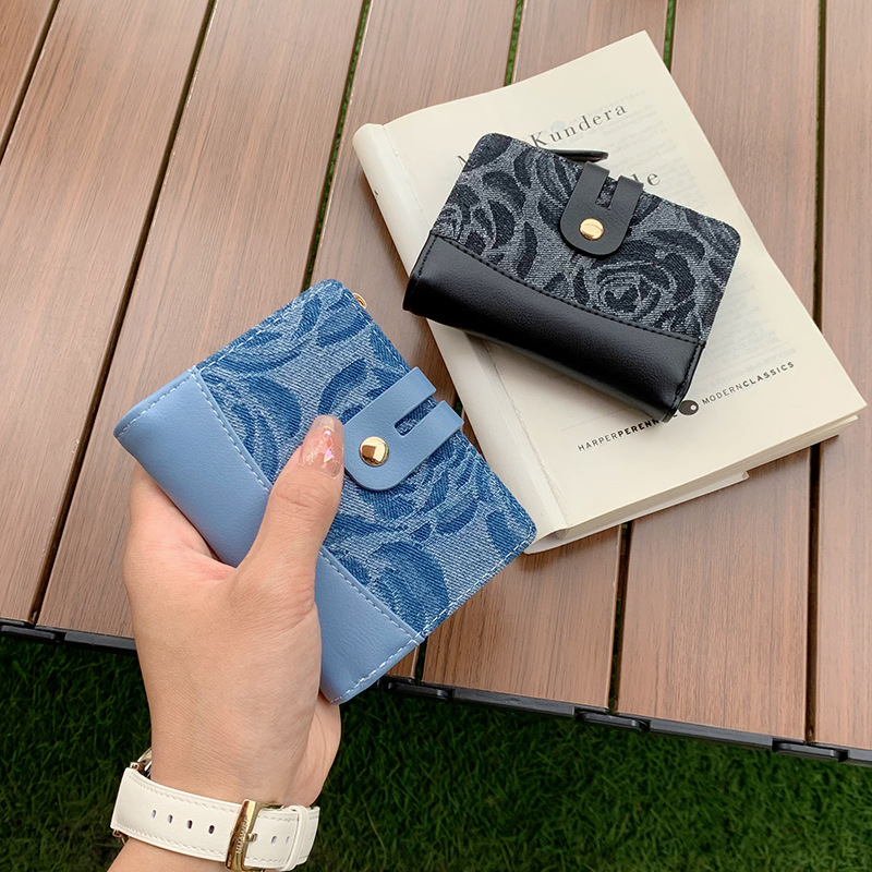 Korean Style 2024 New Style Denim Pattern Ins Small Wallet Women's High-end Folding Wallet Short Clutch Bag