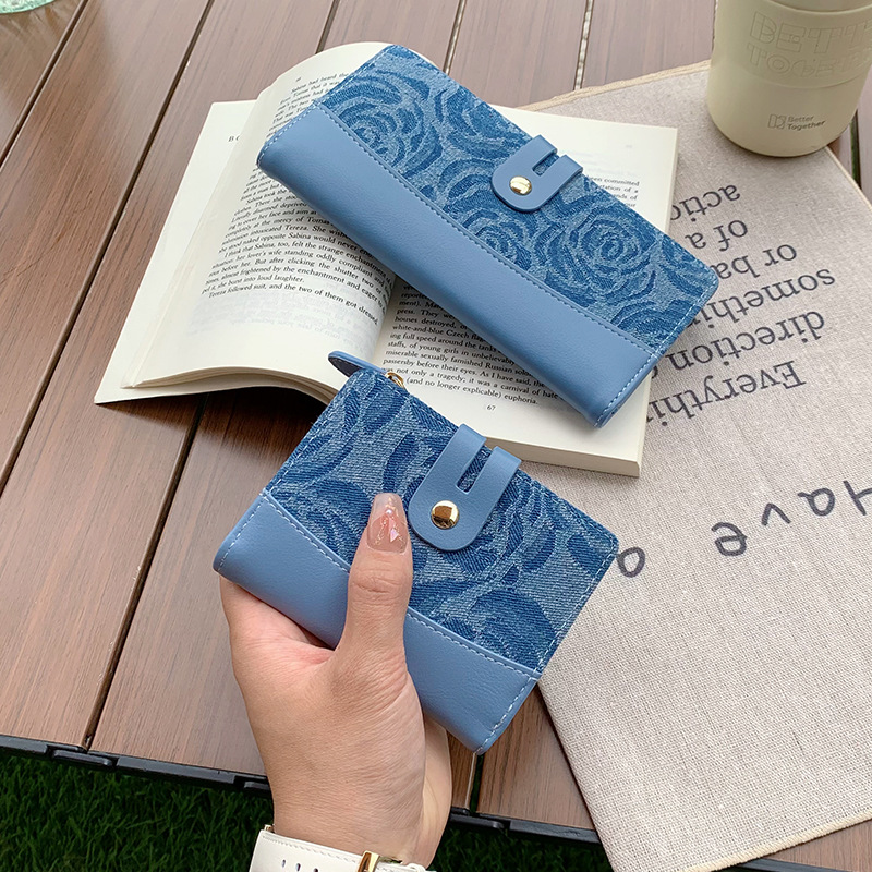 Korean Style 2024 New Style Denim Pattern Ins Small Wallet Women’s High-end Folding Wallet Short Clutch Bag