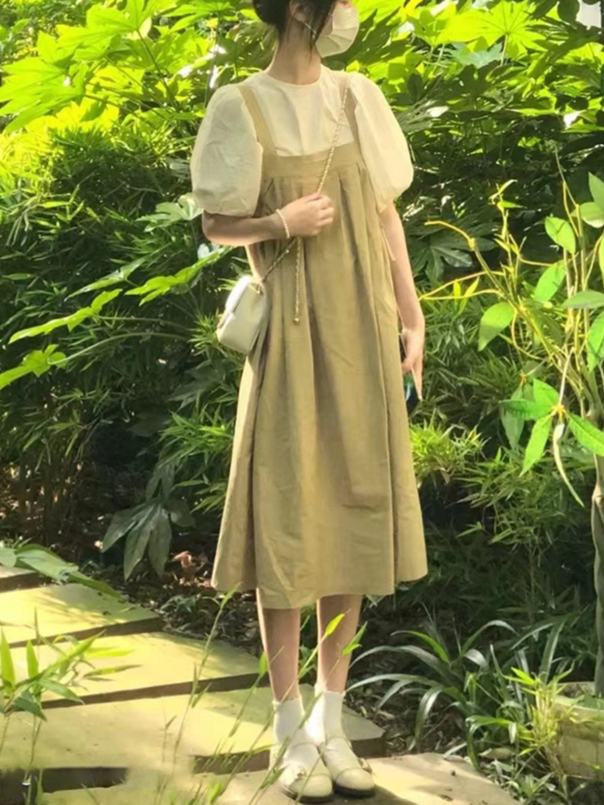 | nameOriginal | Korean-style Academy-style Sweet Puff-sleeve Girl's Two-piece Set dress Short-sleeved Shirt with suit Strap Skirt |