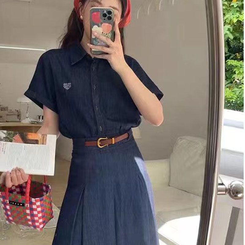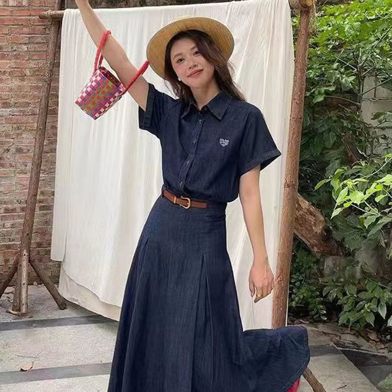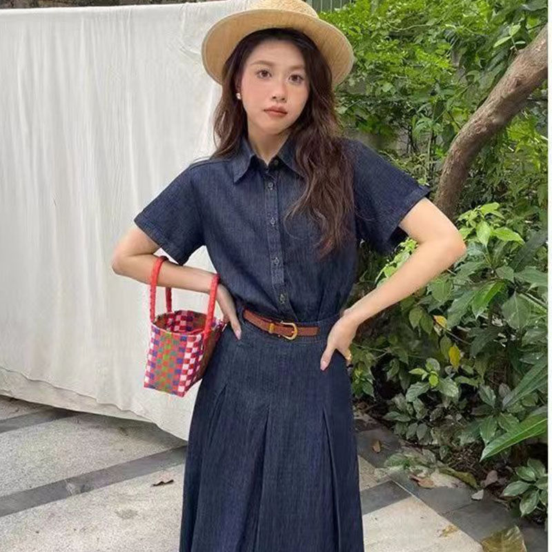 | nameOriginal | Korean-style Age-reducing Gentle Elegant Niche Ins Slimming High School Student Commuter Retro Denim V-neck Two-piece dress Set |