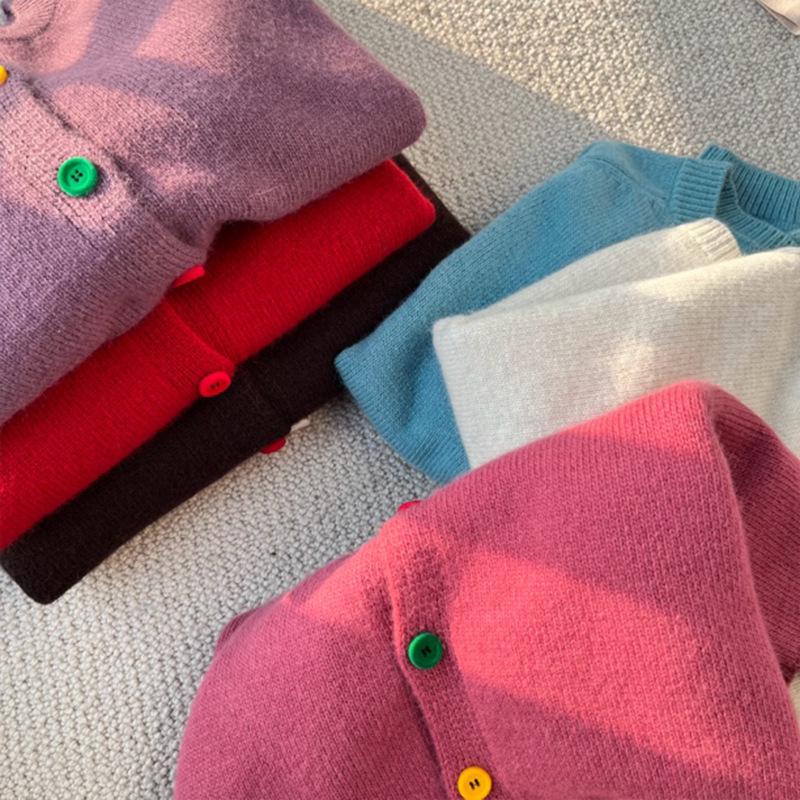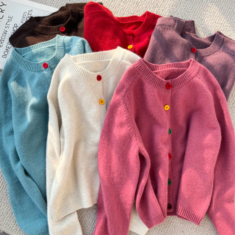 Korean Style Age-reducing Rainbow Single-breasted Crewneck Knitted Cardigan Autumn and Winter New Lazy Style Niche Pink Sweater for Women