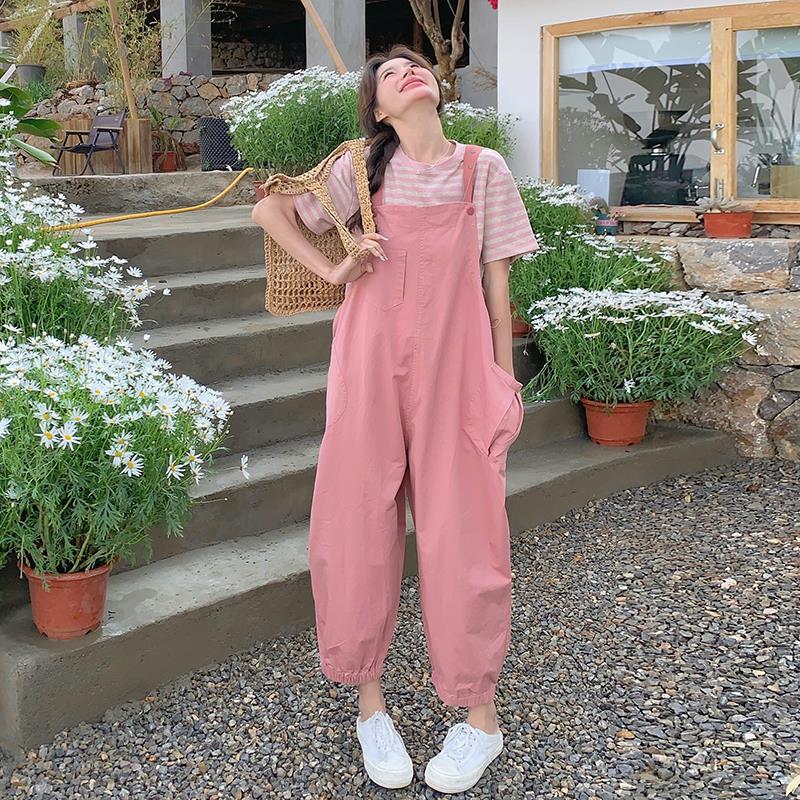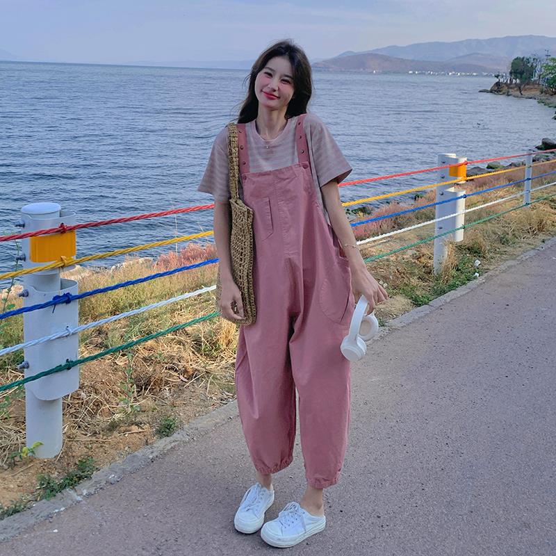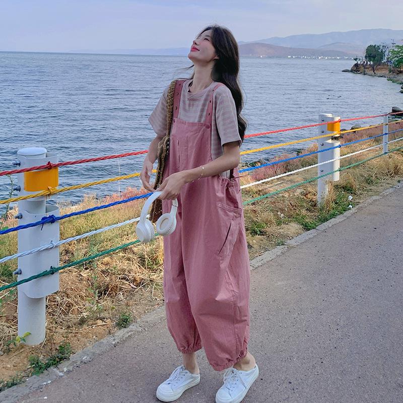 | nameOriginal | Korean Style Age-Reducing Workwear Bib Pants Women's Summer New Striped T-Shirt Casual Suit Nine-Piece Two-Piece Set |