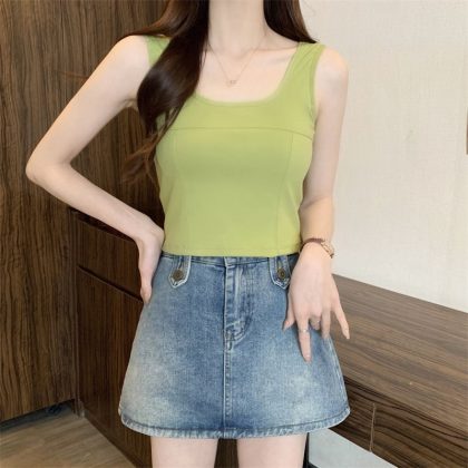 | nameOriginal | Korean Style All-match Summer Square Collar Wide Shoulder Vest New Style with Chest Pad Inner Wearing Outer Wearing Sleeveless Base Solid Color Top for Women |